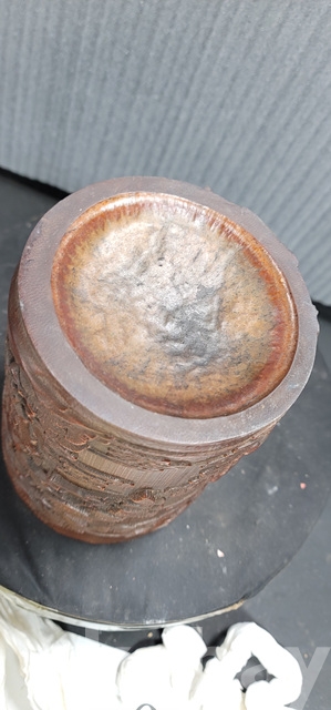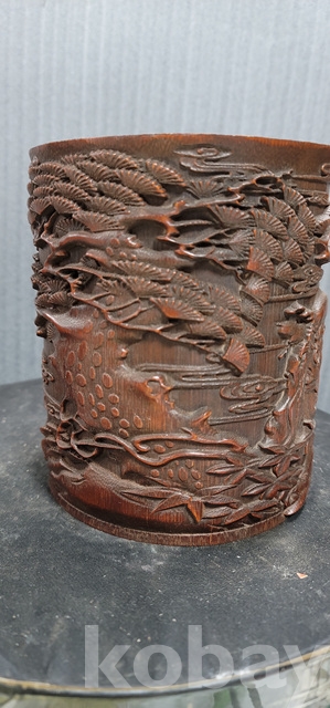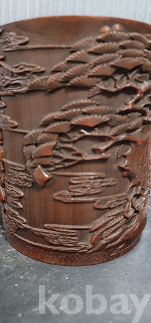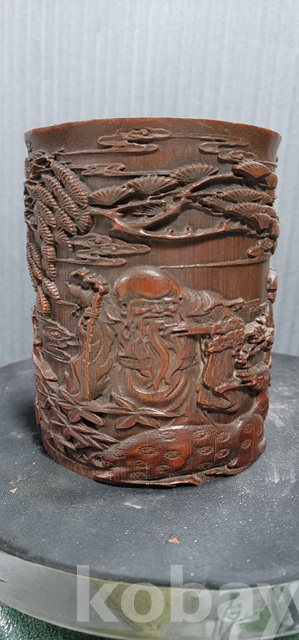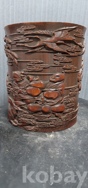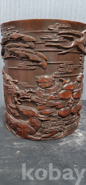 b-201.양각조각이잘된 동자와선비문양 대나무필통