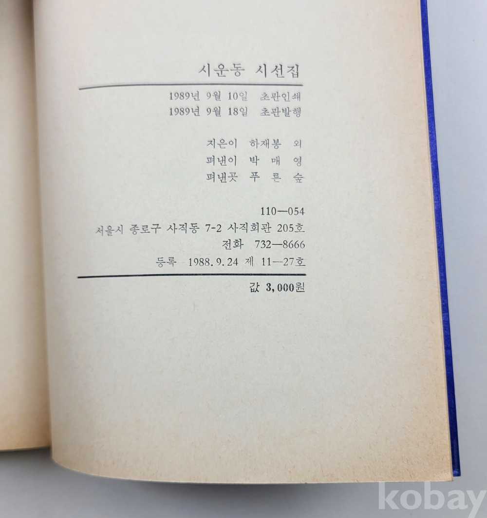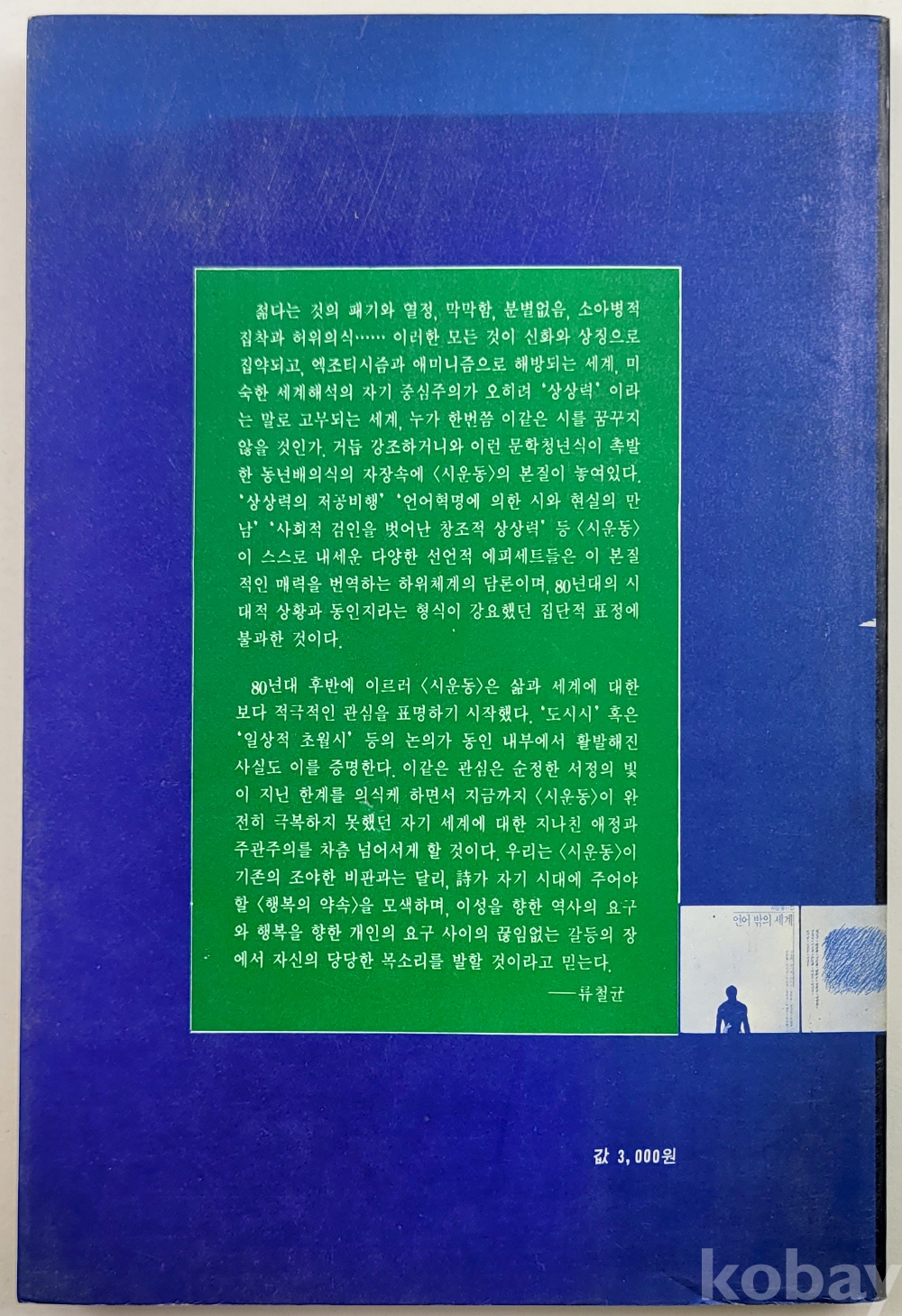 물 품 명 | 시운동 시선집 / 하재봉 외 22인 / 80년대의 동인지문학을 총정리하는 시운동 10년결산 / 1989년 초판 / 푸른숲 |