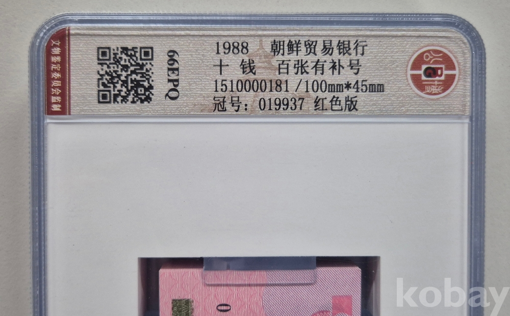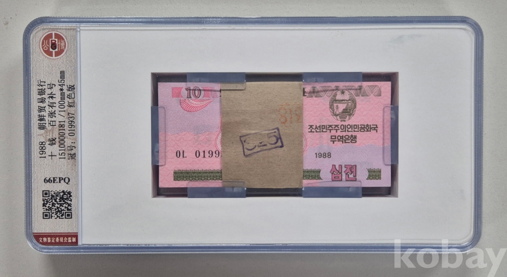 -희귀- 윗동네 1988년 외화와바꾼돈표 십전 100장 다발 GBCA 66EPQ 등급 인증 지폐
