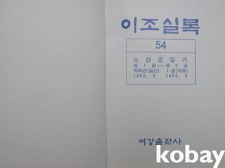 ▒ 1995년 여강출판사에서 재간행한 북한 사회과학원 민족고전연구소 번역, <이조실록 54 : 노산군일기 제1권-제5권>과 <이조실록 55 : 노산군일기 제6권-제10권>이다.