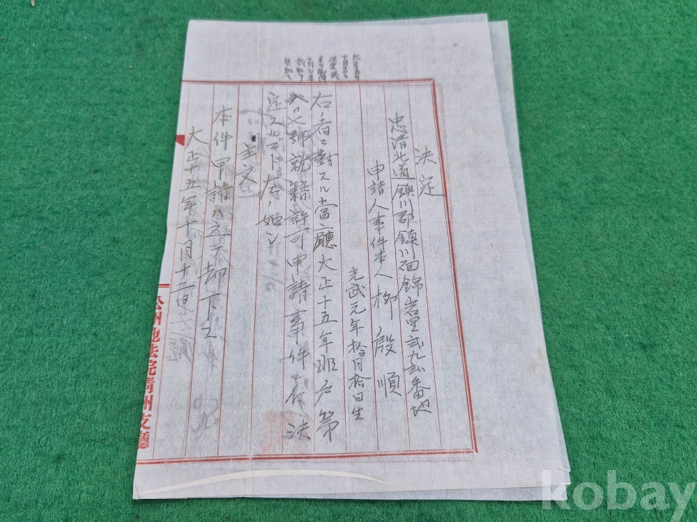 1926년도의 공주지방법원 청주지청의 許可申請決定(허가신청결정)