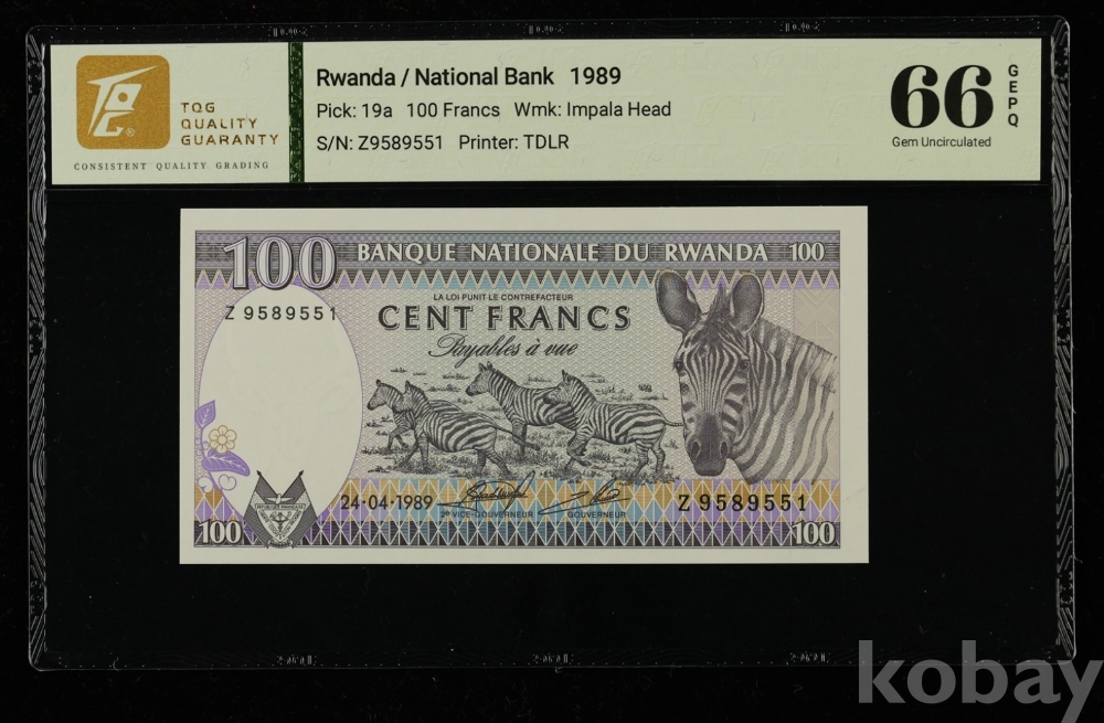 르완다 1989년 100프랑 TQG 66 GEPQ