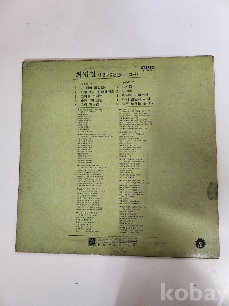 | 자켓상태 | EX : 약간의 마모, 모서리 찢김 존재 | 음반상태 | EX : 재생에 영향 없는 가벼운 기스 존재 | 발매정보 | 초반 | 가사지여부 | 무 |
