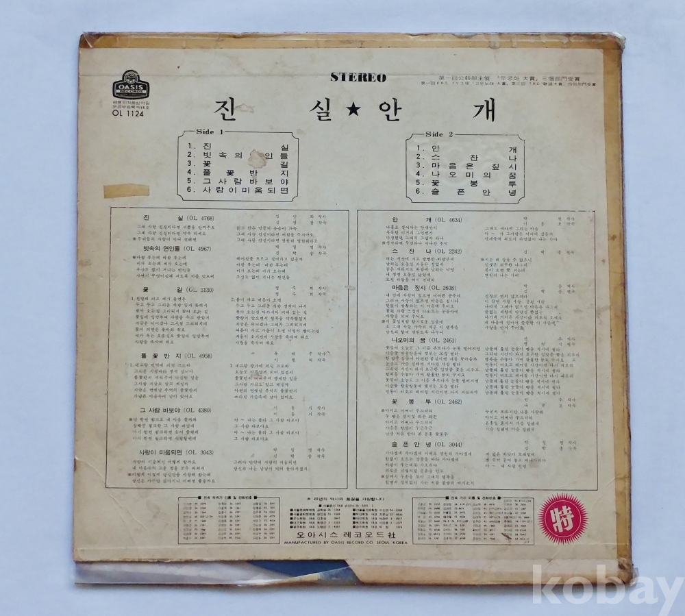 EX : 약간의 마모, 모서리 찢김 존재 음반상태