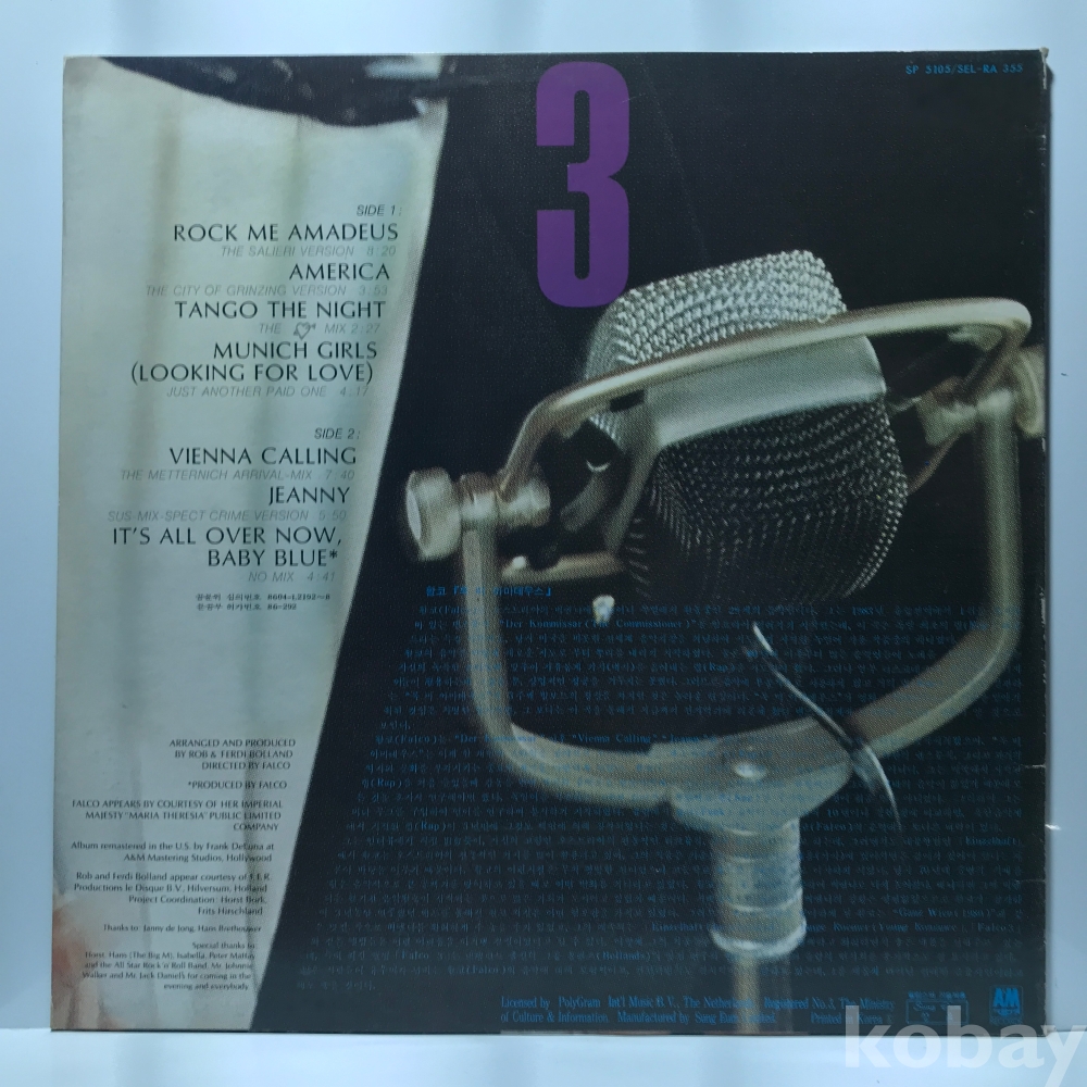 LP 29,300-199 FALCO FALCO 3 . 86 성음 자켓 EX+ 알판 EX