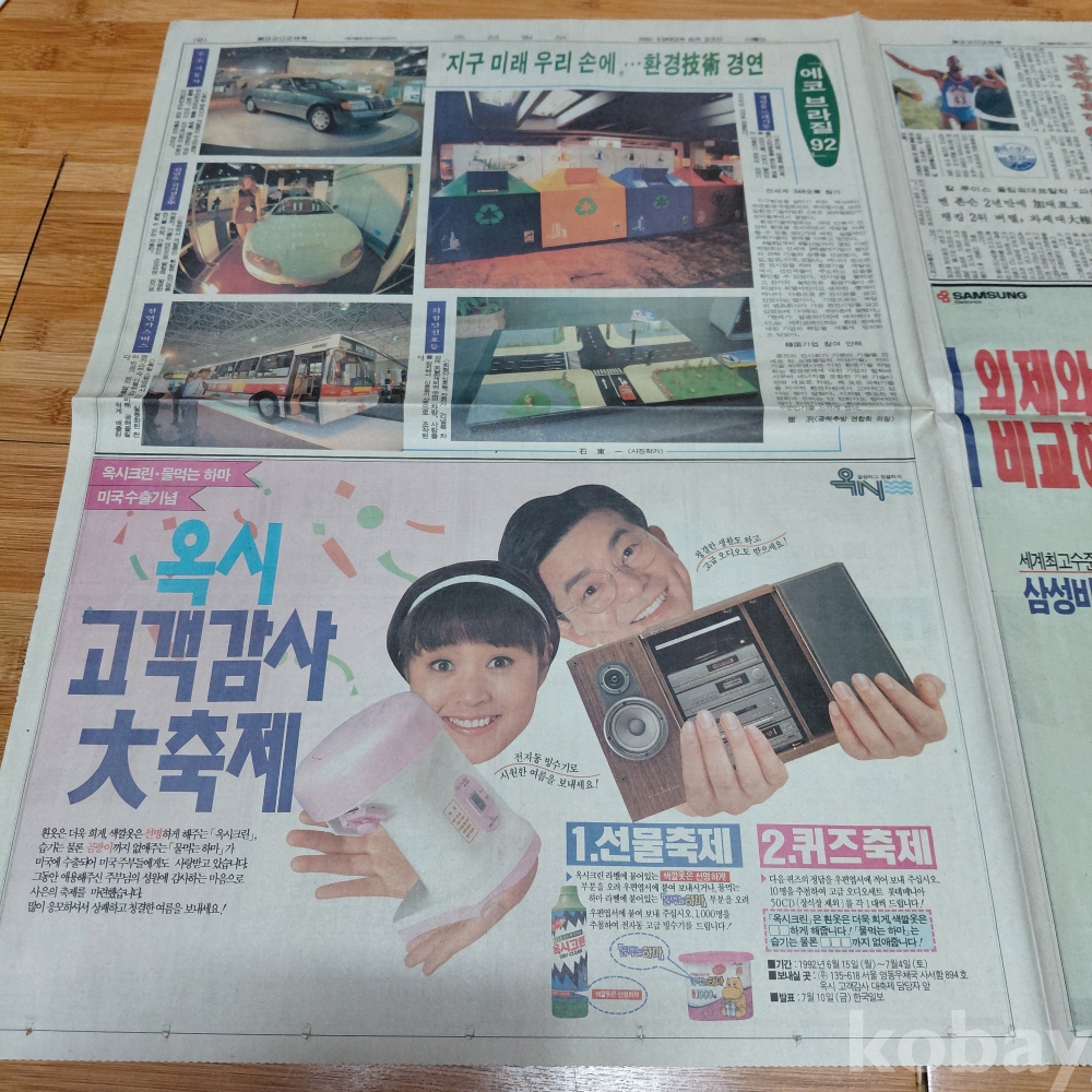 삼성전자 삼성 비디오무비 카메라 ㆍ옥시크린 고객감사 대축제 광고 조선92년6월23일 올려드립니다