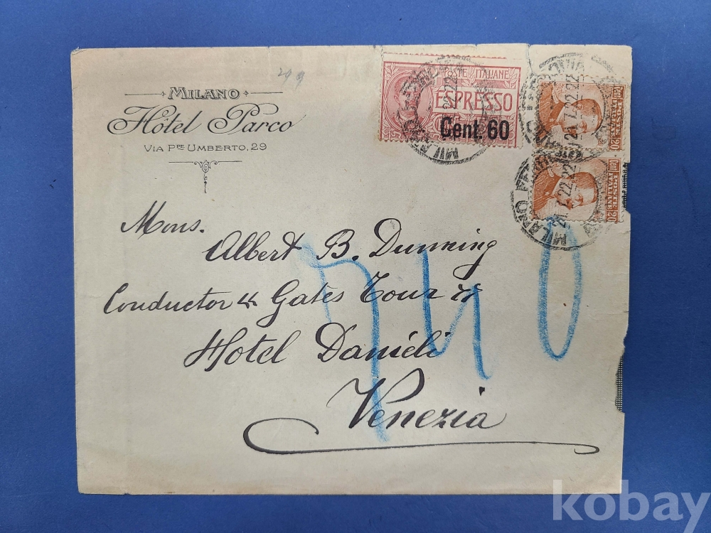 [흥미우표] 1922년 이달리아 속달우표 첩부 베네치아행 실체