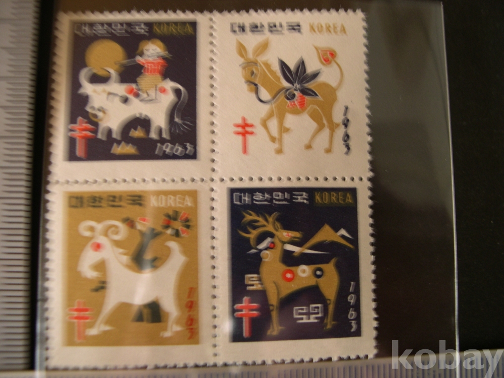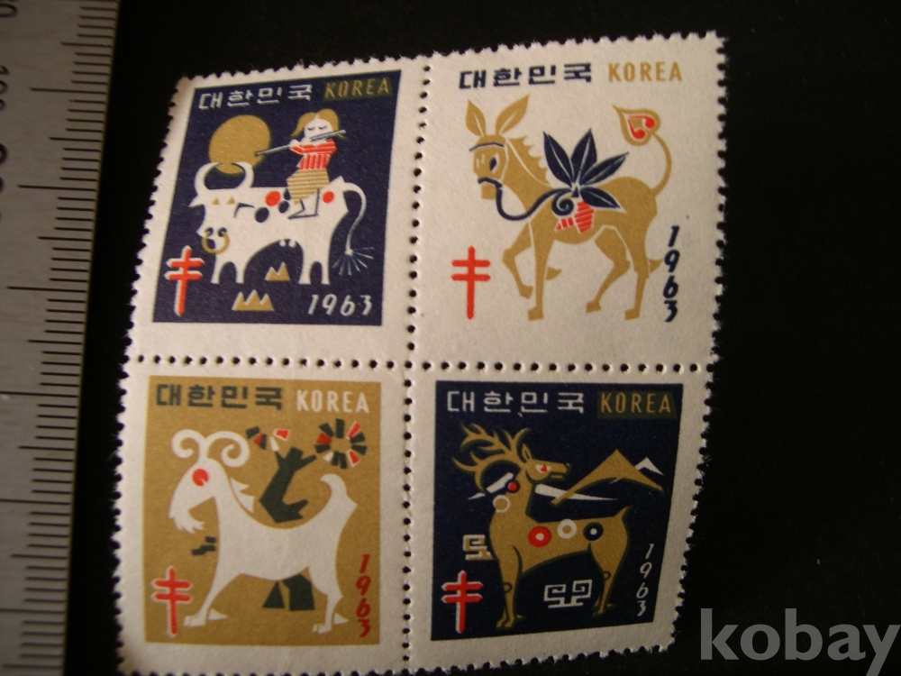 1963년 씰 #121923 : 소 + 말 + 양 + 시슴 (4종블럭)