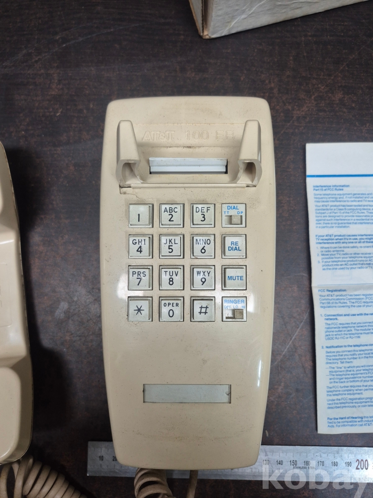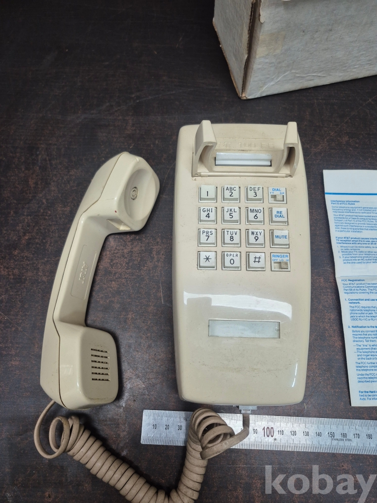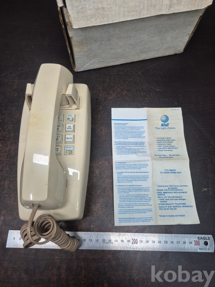 1980년대 미국 AT&T 사의 벽걸이형 전화기 미사용급 박스품 아이보리색 설명서 박스 포함 10*23*15