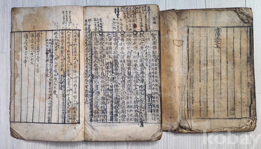 오래된(임난전) 대흑구 목판본 서문대전 상.하 2책완질 입니다 책목판(글씨틀)은 크기가 같고 외형 크기가 다릅니다 하편 시작2장그림과 첫장과 마징막장 필사 되어 있습니다 세월대비 양호한편 입니다 사진 참조바랍니다