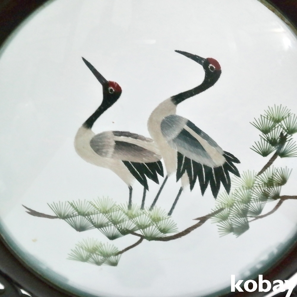 일본에서 만들어진 유리속에 자수가 들어간 자수액자 입니다.