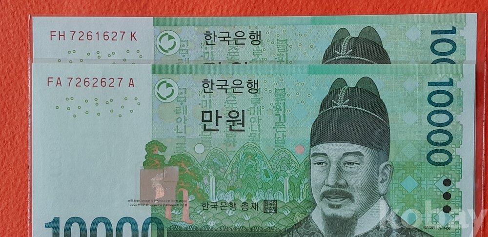 한국은행 바 10000원 레이더 지폐 2매 입니다.