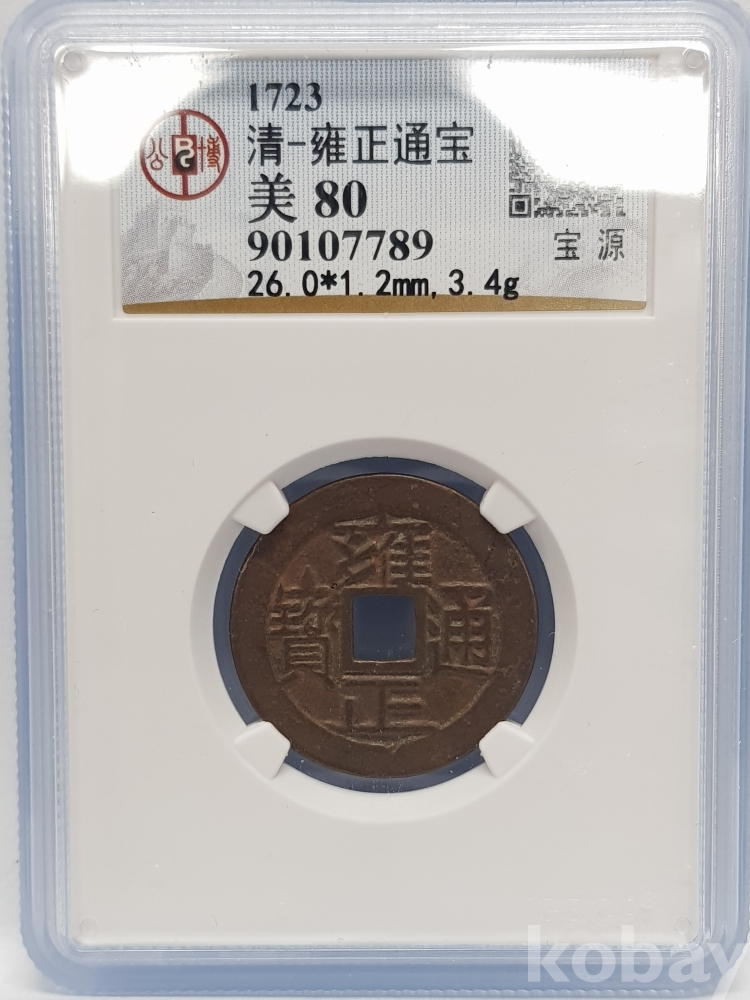 - 중국 청나라 1723년 옹정통보 엽전 인증 주화