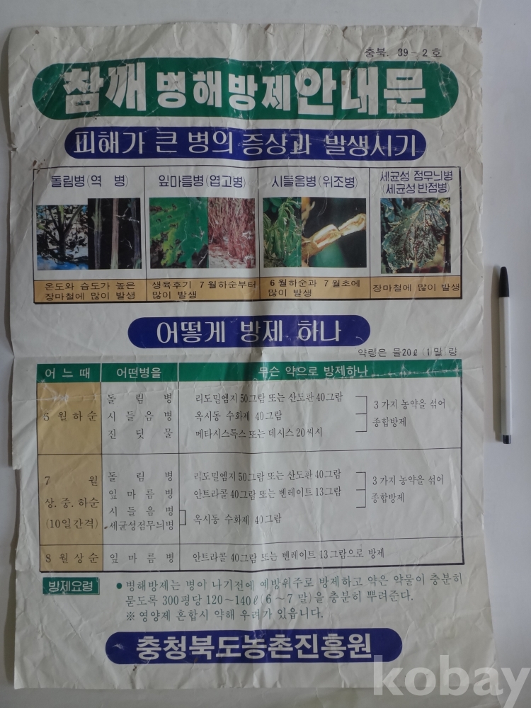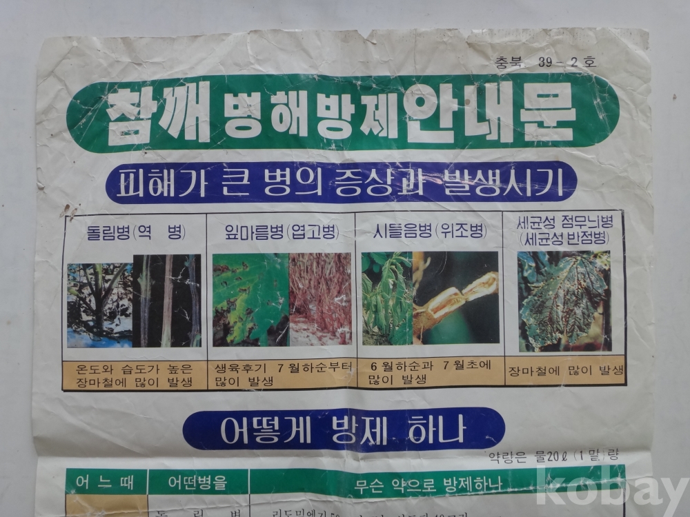 참깨 병해 - 방제 안내문 (1989년, 충청북도농촌진흥원)