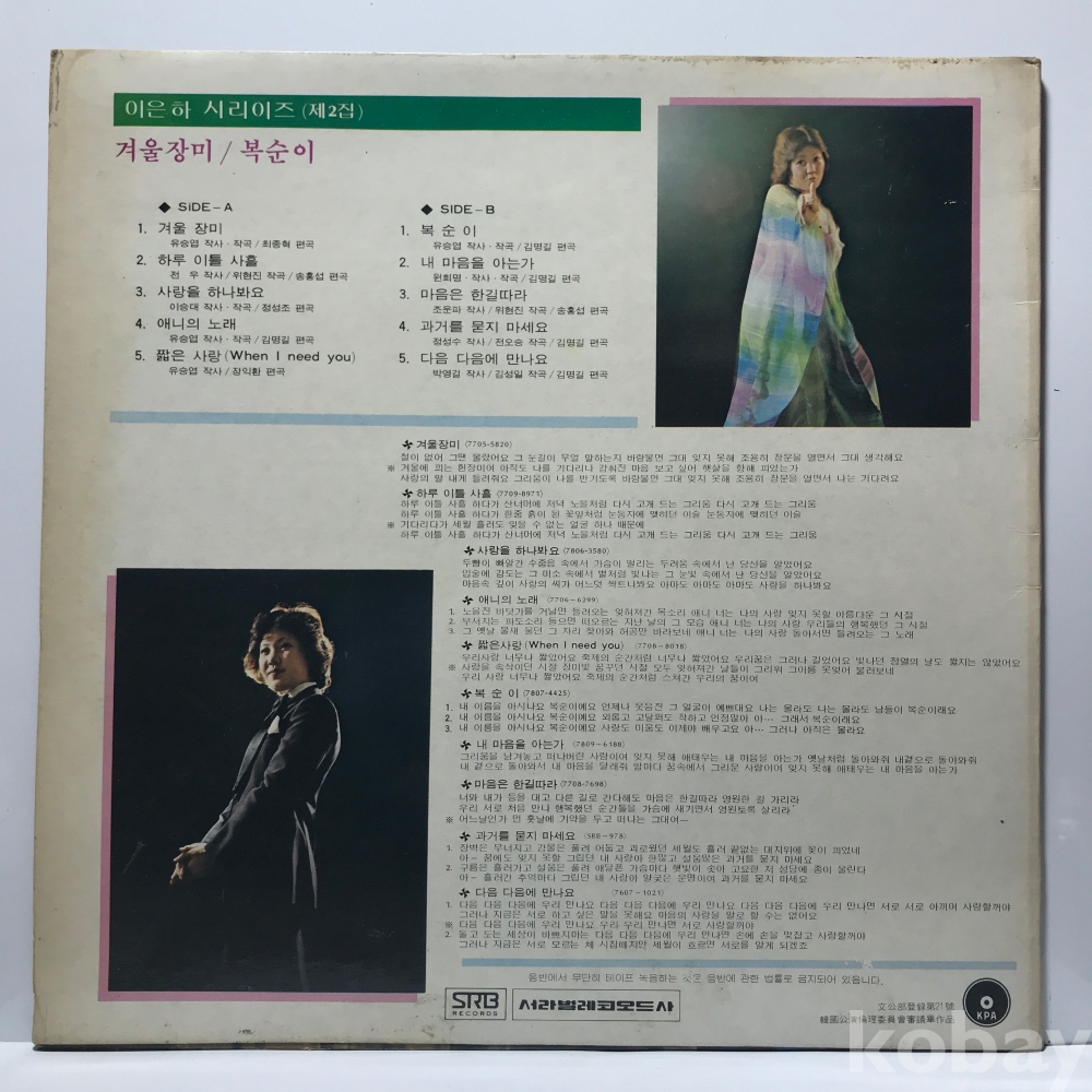 LP 29,300-36 이은하 - 겨울장미/ 복순이 . 78 서라벌 자켓 EX+ 알판 EX+