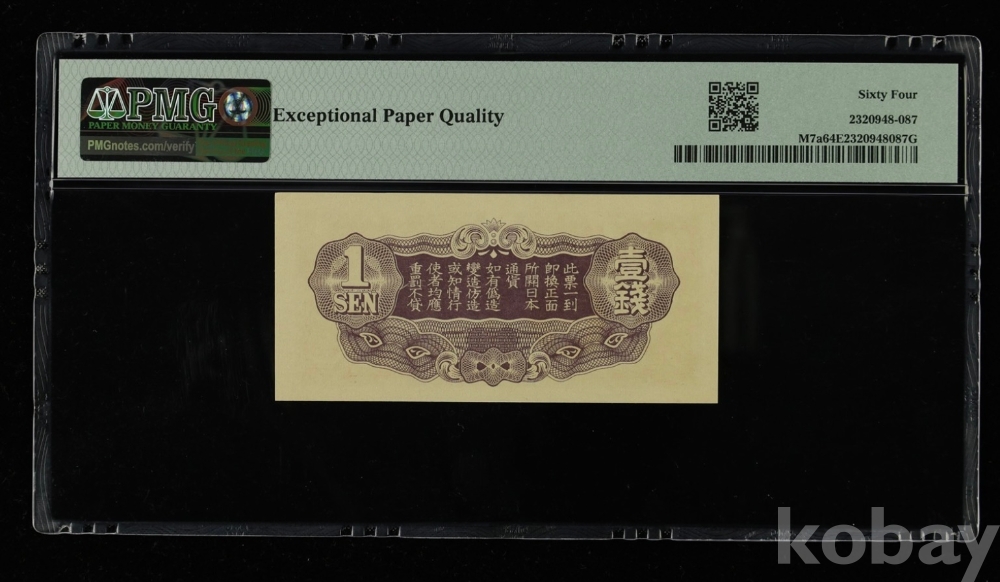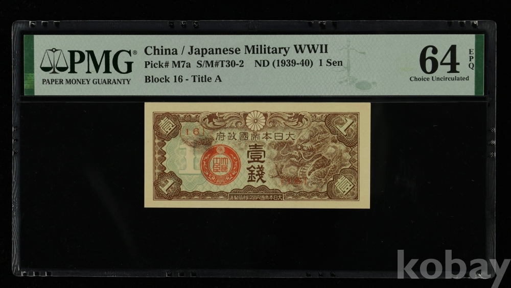 중국/일본 점령기 1939년 1센 군표 PMG 64 EPQ