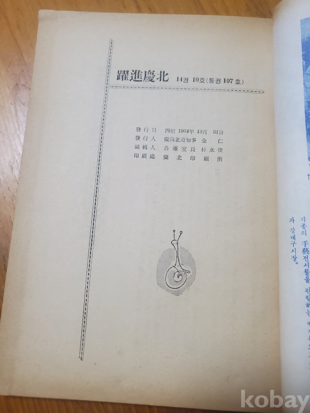 1. 약진경북 통권 107호, 경상북도, 1964년, 156쪽, 상태 상, 사진 참조