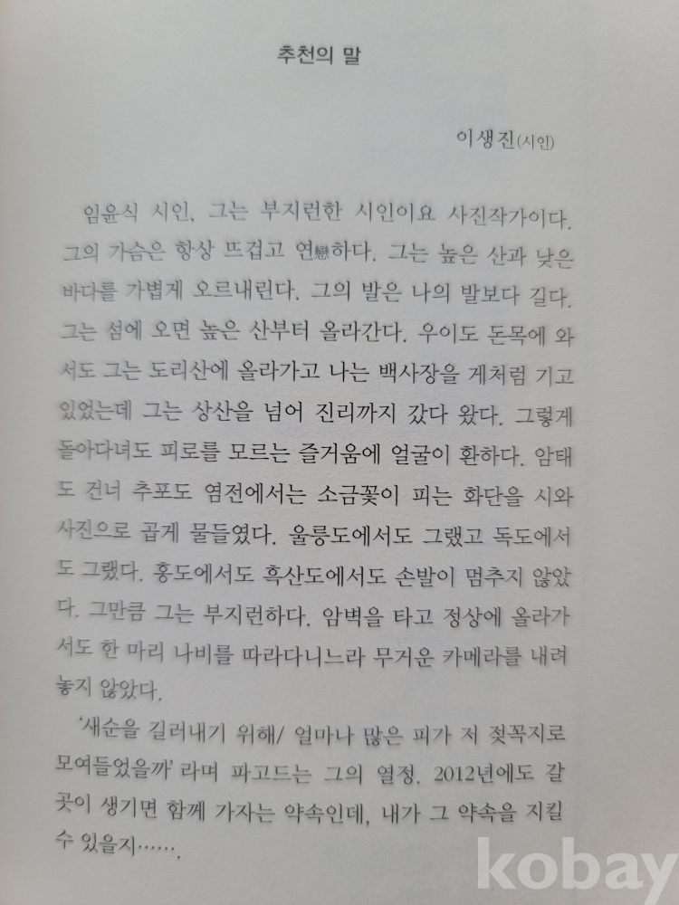이생진 시인의 추천사. 이동순 교수(문학평론가)의 해설.