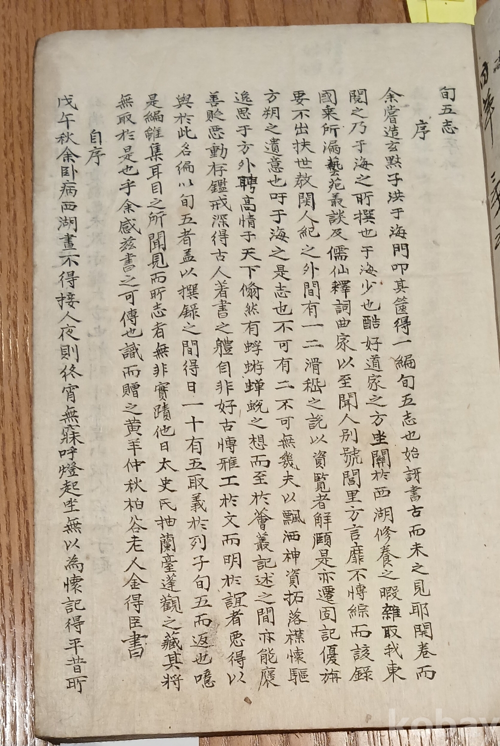 『순오지』의 책머리에는 김득신(金得臣)의 서와 저자의 자서가 있다. 자서에서 자신이 병으로 누워 지내다가 옛날에 들은 여러 가지 말과 민가에 떠도는 속담 등을 기록하였다고 밝혀 놓았다.