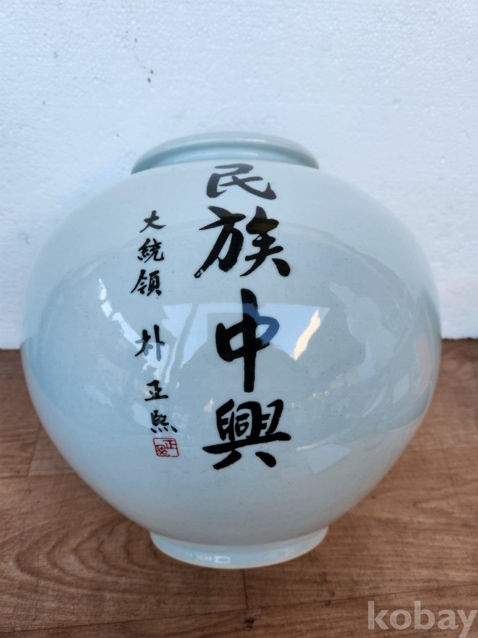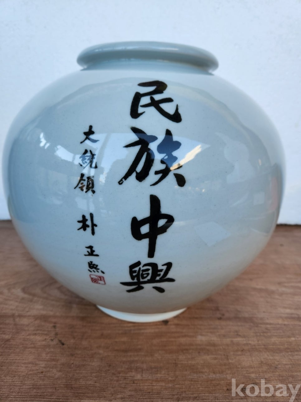 박정희 민족중흥 글씨가 있는 달 도자기 입니다.