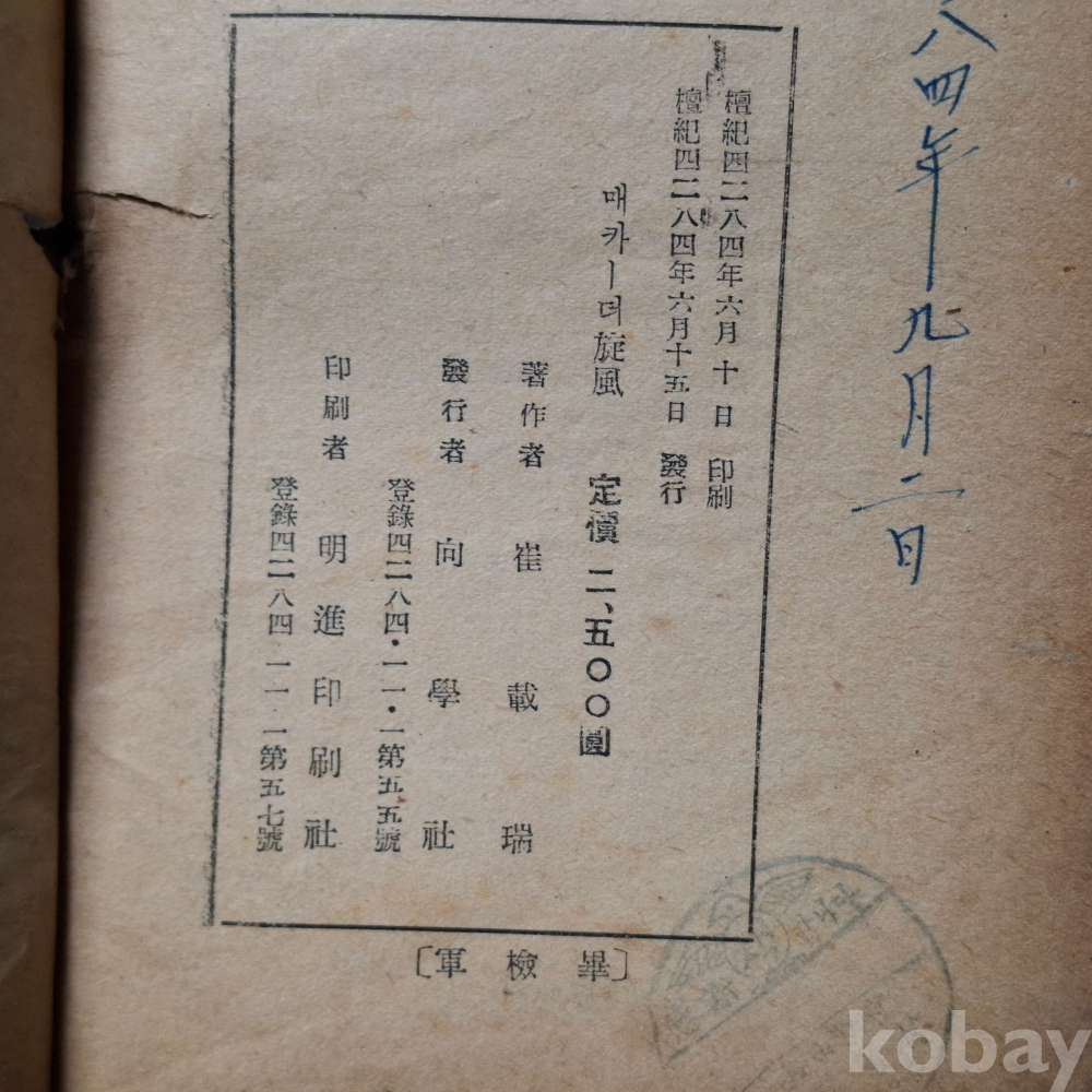 | 제조국 | 한국 | 연대 | 1945년~1959년 |