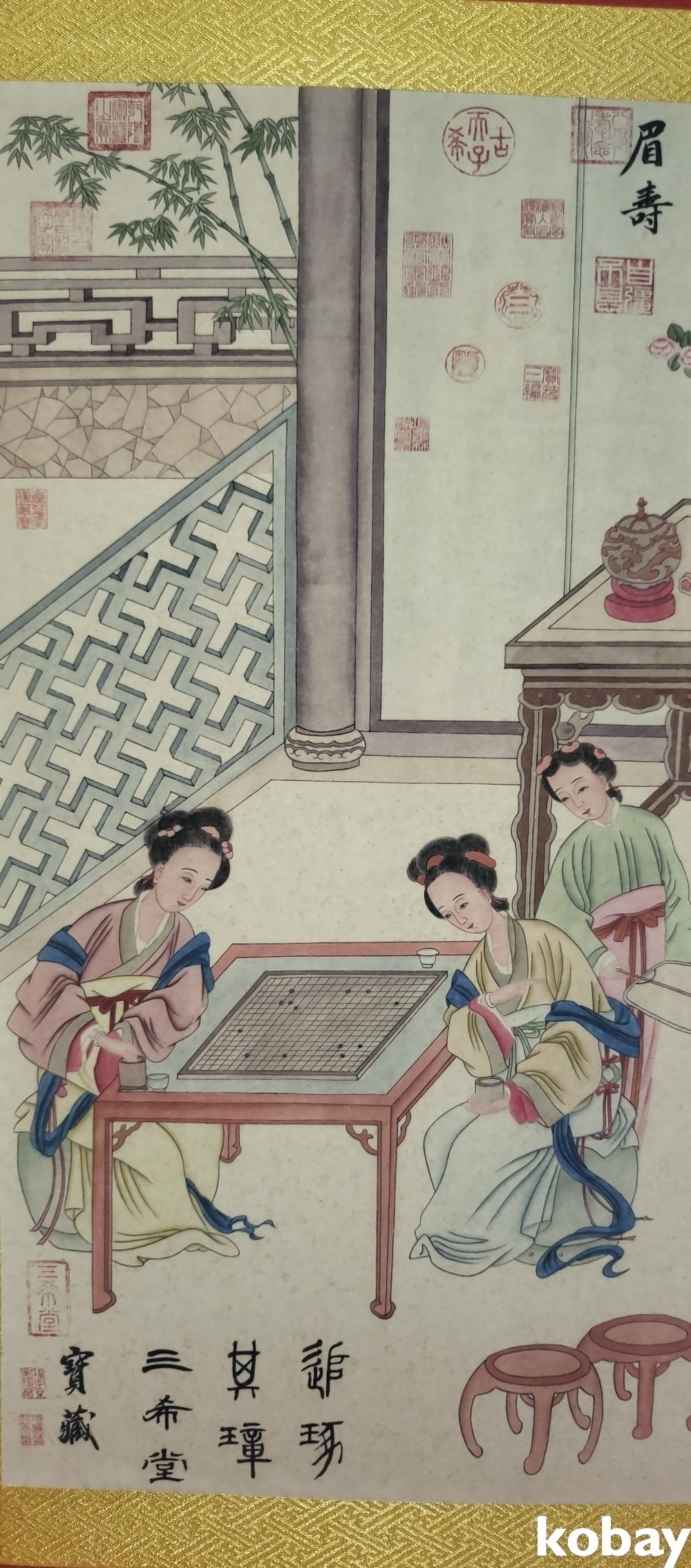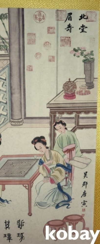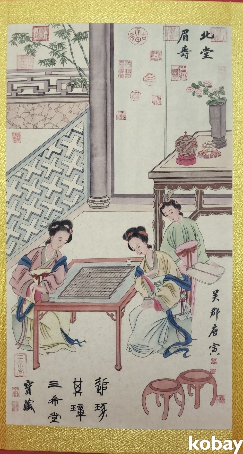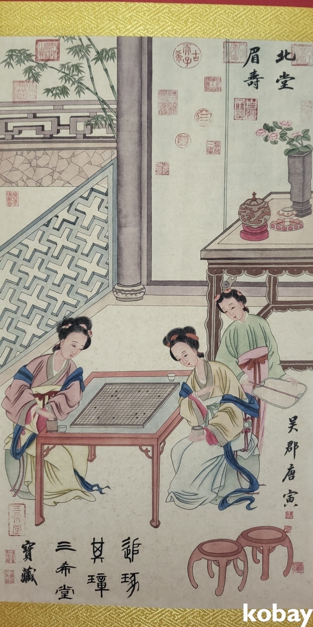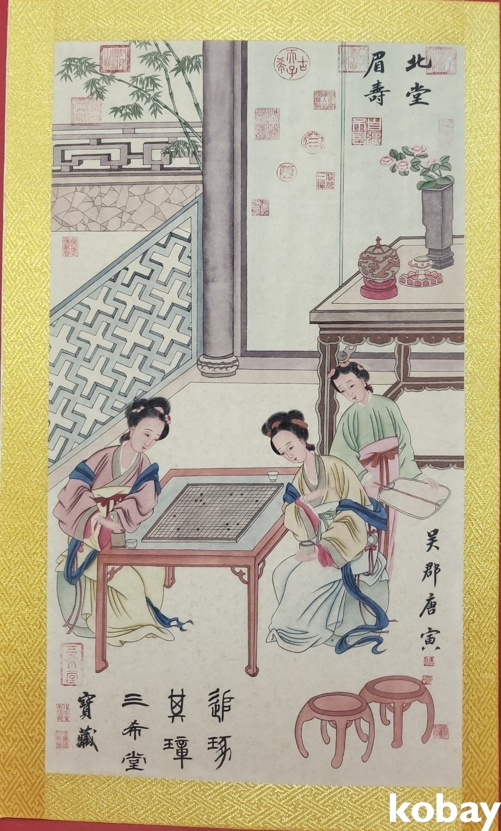 중국 유명 화가 당인(唐人)수결이 보이는 종이에 채색된 그림입니다,