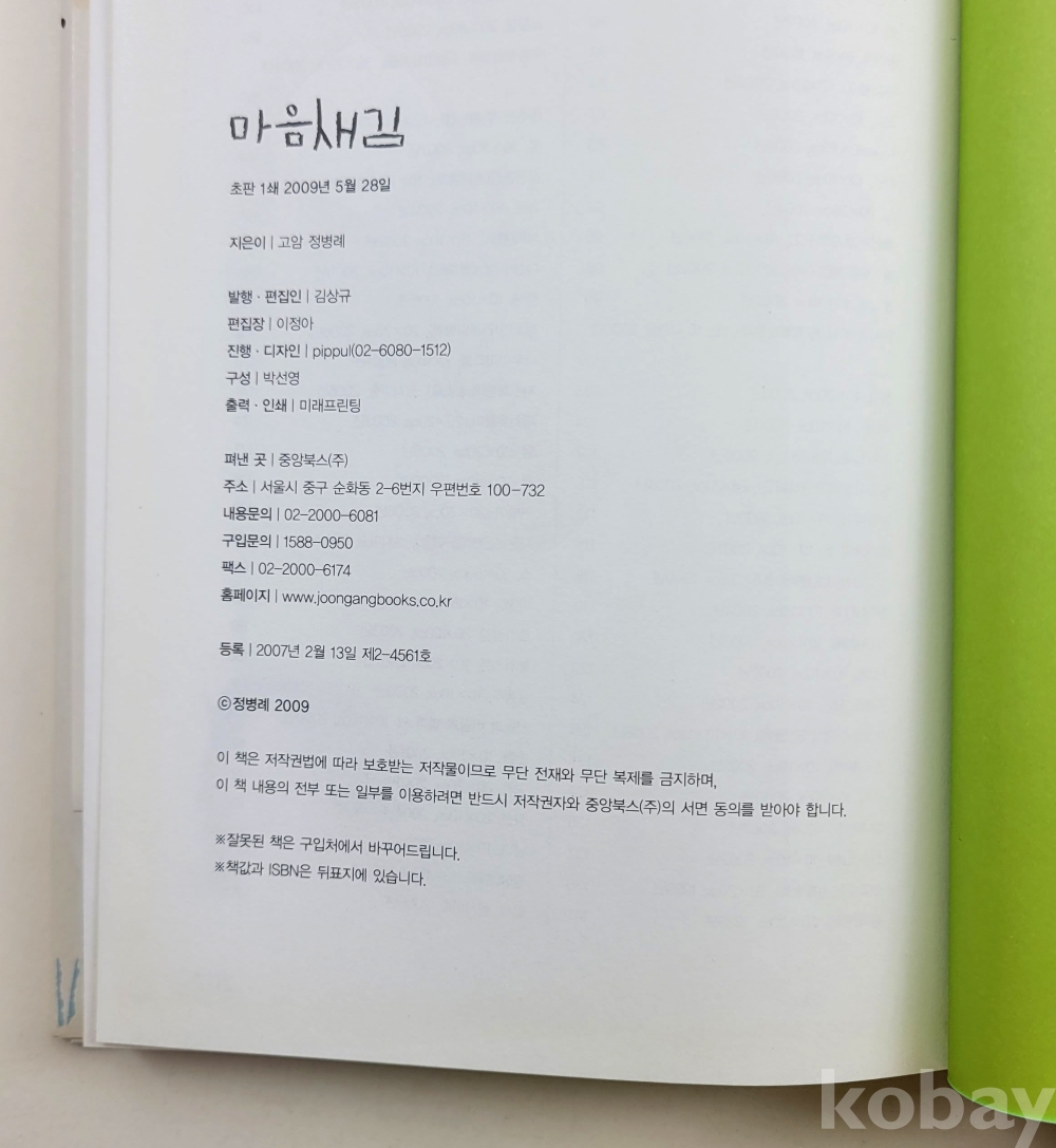 물 품 명 | 정병례 / 마음새김 / 전각과 시와 에세이 / 정고암 특별초대전 팜프렛 포함 / 2009년 초판 / 중앙북스 |