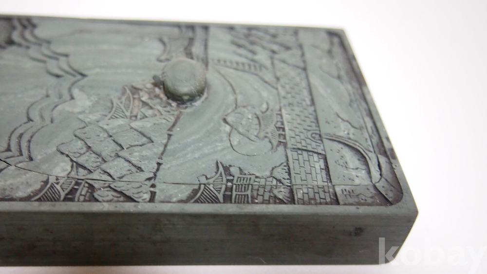 상품 설명 | 황해도 해주의 쑥색 애석(㘷石) 음양각 평양 목단대 벼루입니다. 고대부터 해주의 먹과 벼루는 중국과 일본으로 무역을 했을 정도로 귀한 대접과 인기를 누렸습니다. 조선 중기부터 말까지 최고의 서화가들이 해주먹과 벼루를 사용했다고 합니다. 조선 말부터는 보령 백운상석, 남포석은 추사선생도 사용했다고 합니다. 특히 해주산은 부드럽고 은은한 먹 색상은 본인도 고서화 감정할 때 참고로 합니다. | ||