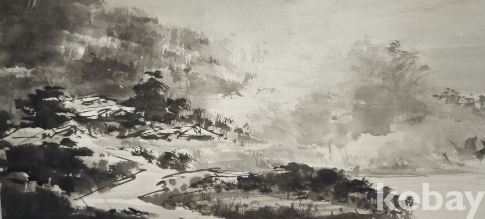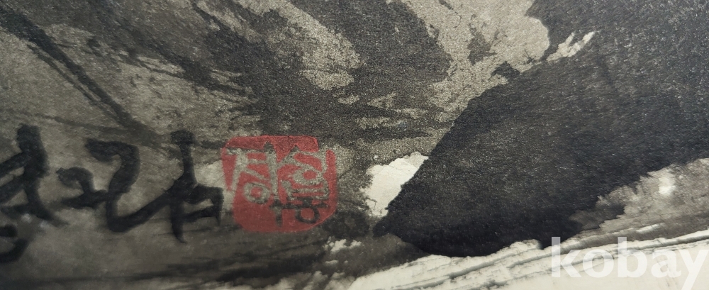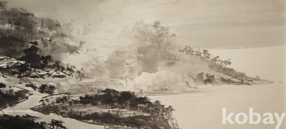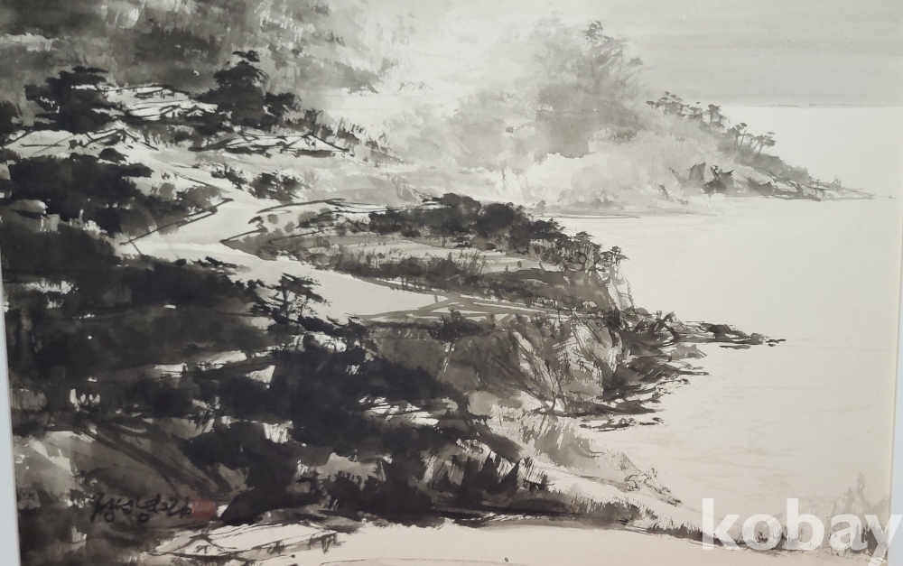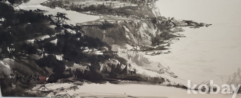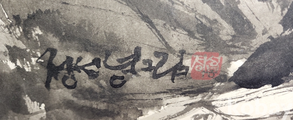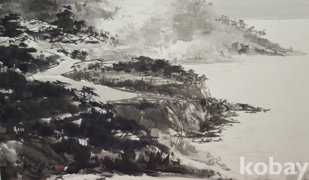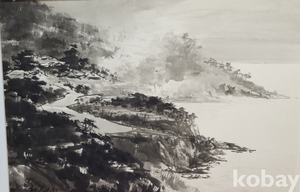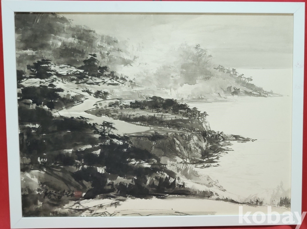 수묵 담채 화가로 명성이 높으신 정성봉님의 물가 먹으로만 완성된 명화입니다,