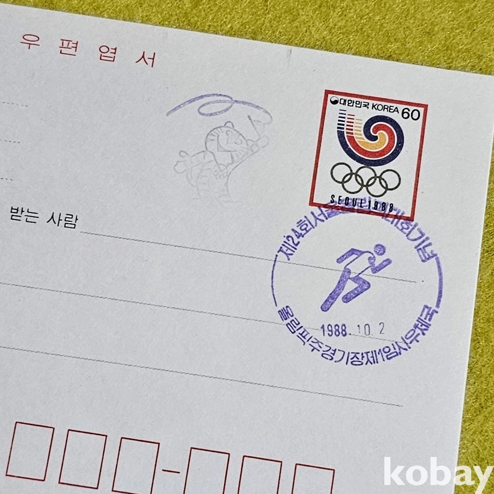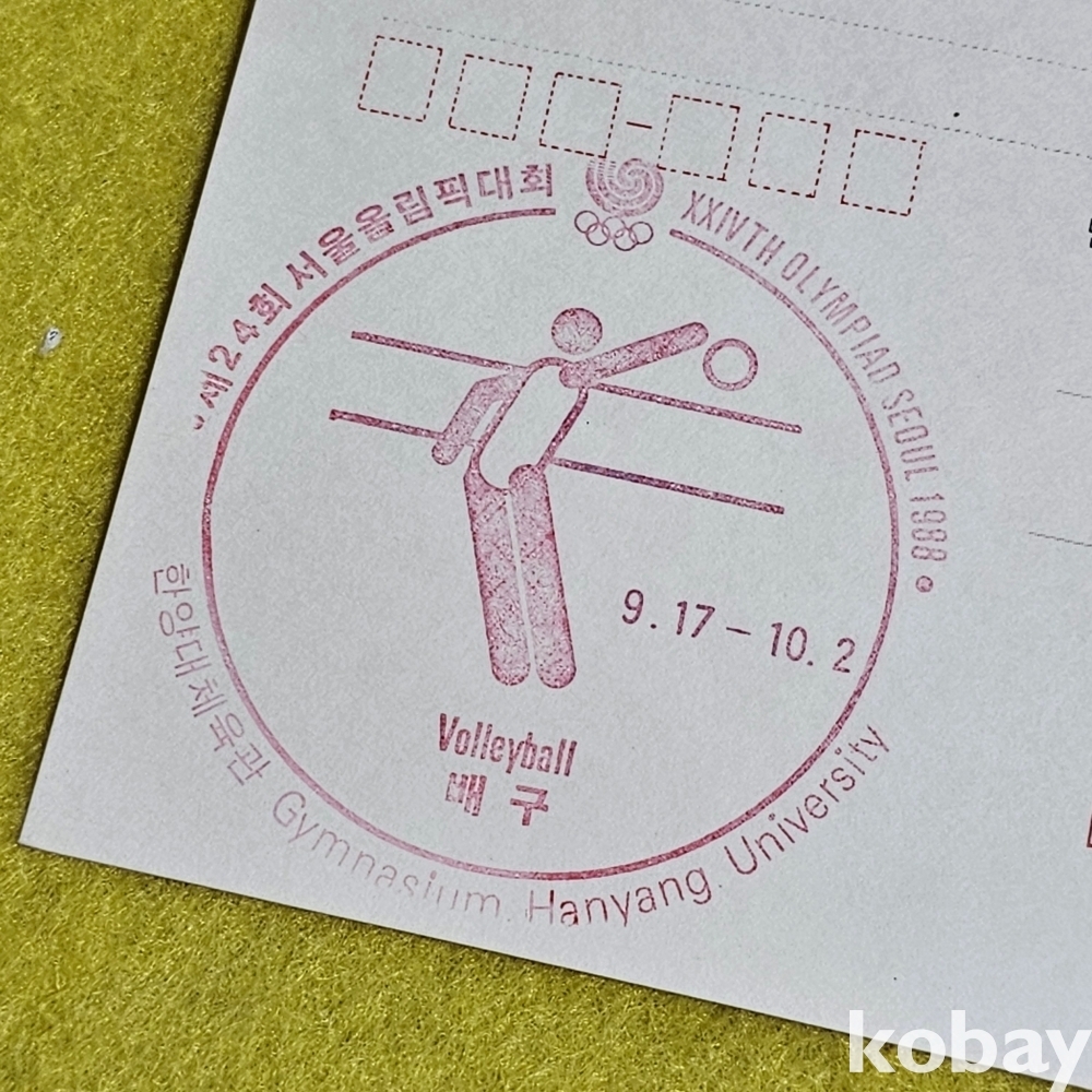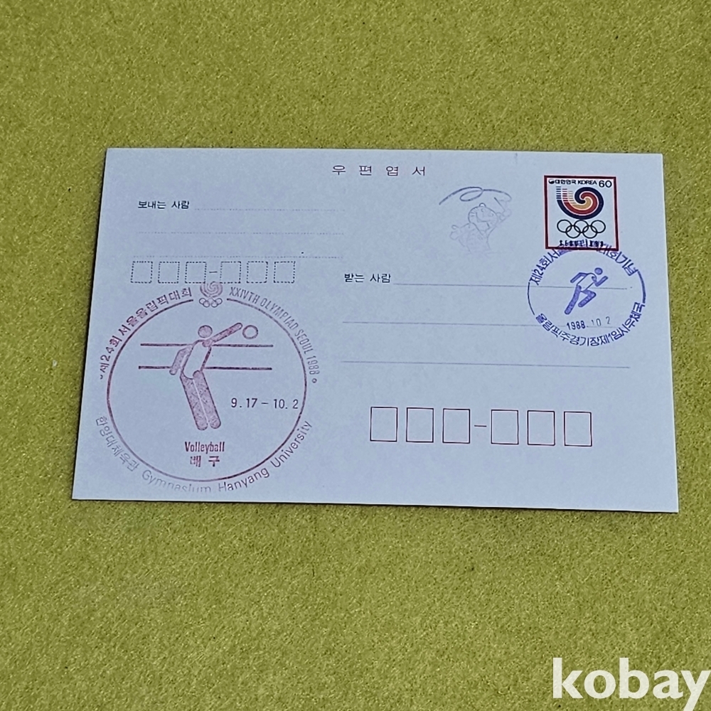 (((우취자료/우편엽서/실체))) 1988년 제24회 서울올림픽대회기념 우편엽서 (배구/육상/호돌이기념인)
