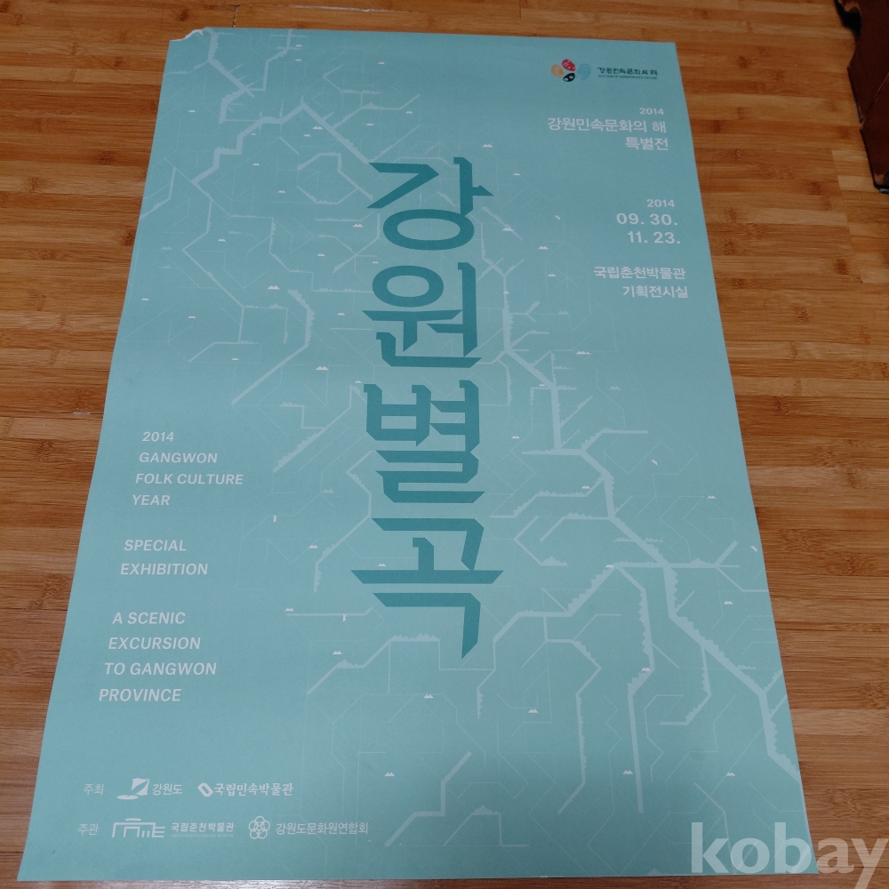 강원별곡 강원민속문화의해특별전시회 홍보 초대형 포스터 국립춘천 박물관 상단좌측 훼손된 곳있음 사진참고 올려드립니다
