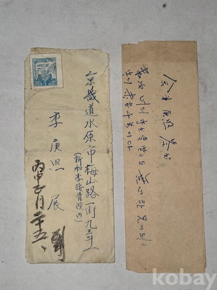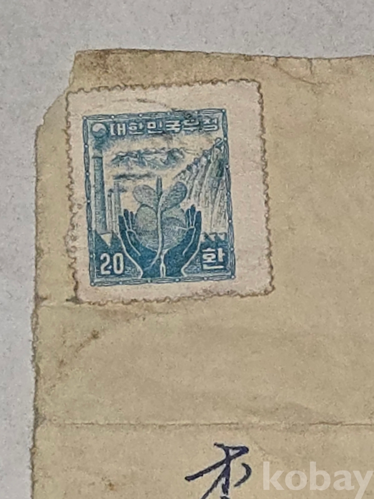 1950년대 = 대한민국우정 산업도안 20환 사용실체 .내용물 있음