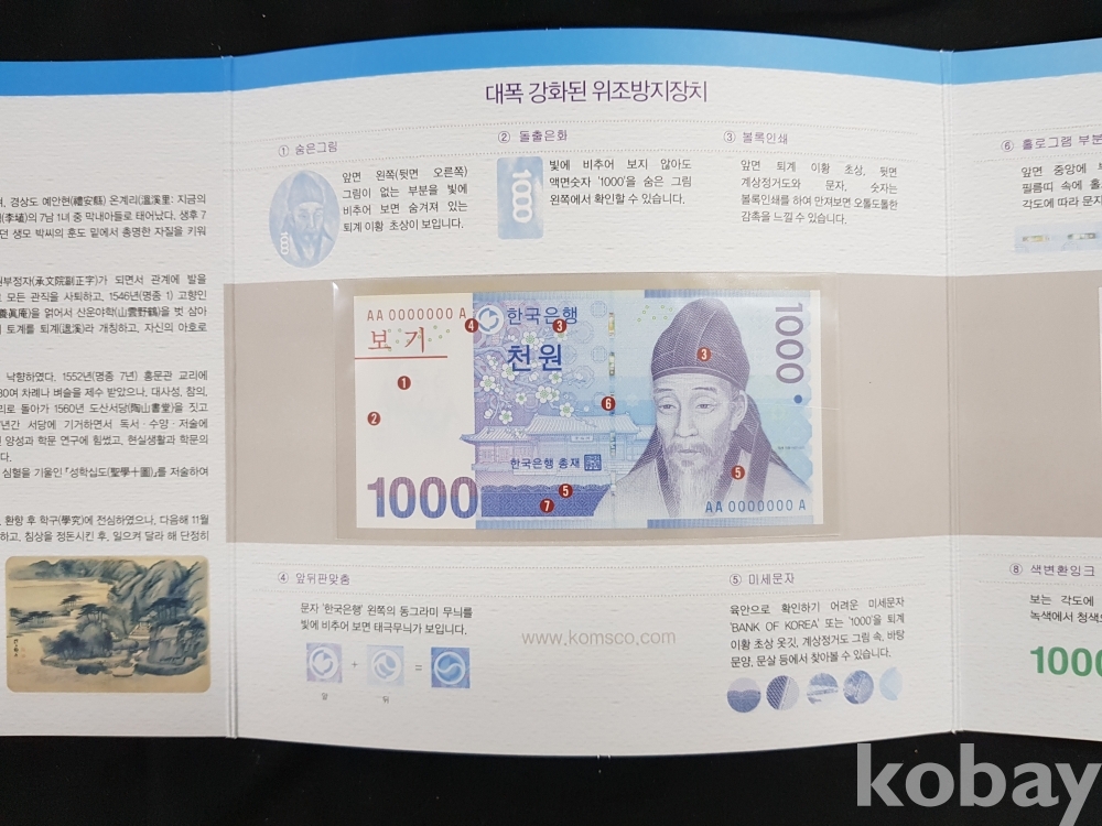 지폐에 대한 설명이 자세하게 기재되어 있습니다.