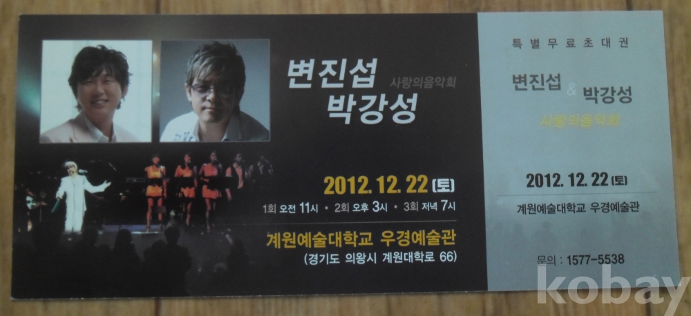 2012년 변진섭/박강성 사랑의음악회 초대권