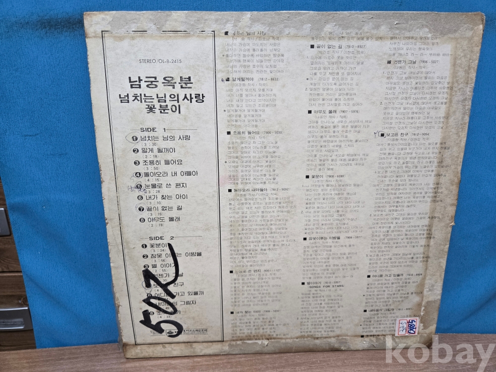 | 자켓상태 | VG : 주름, 접힘, 모서리 찢김 다수 | 음반상태 | EX : 재생에 영향 없는 가벼운 기스 존재 | 발매정보 | 초반 | 가사지여부 | 유 |
