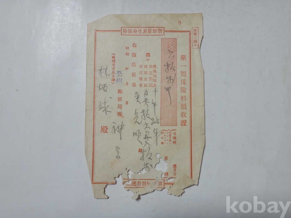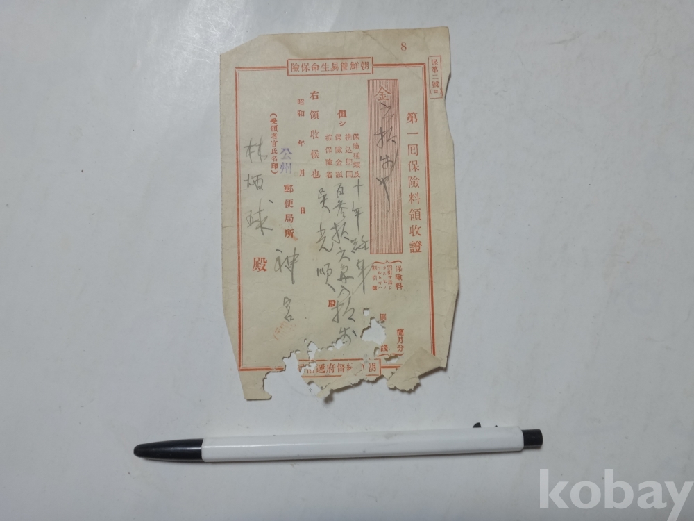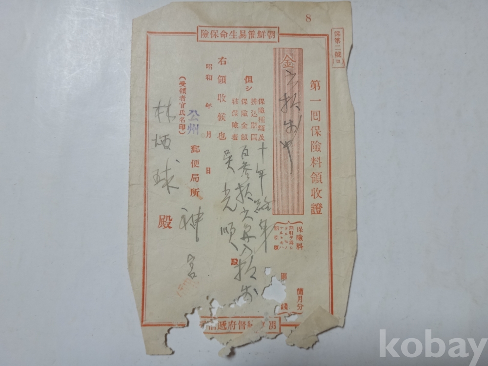 조선간이생병보험료 영수증 (공주 우편국소, 소화10년)
