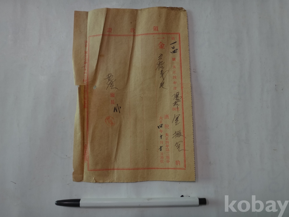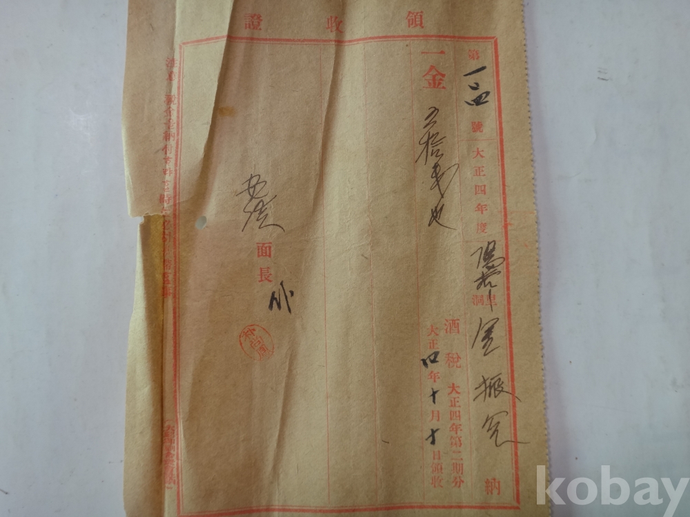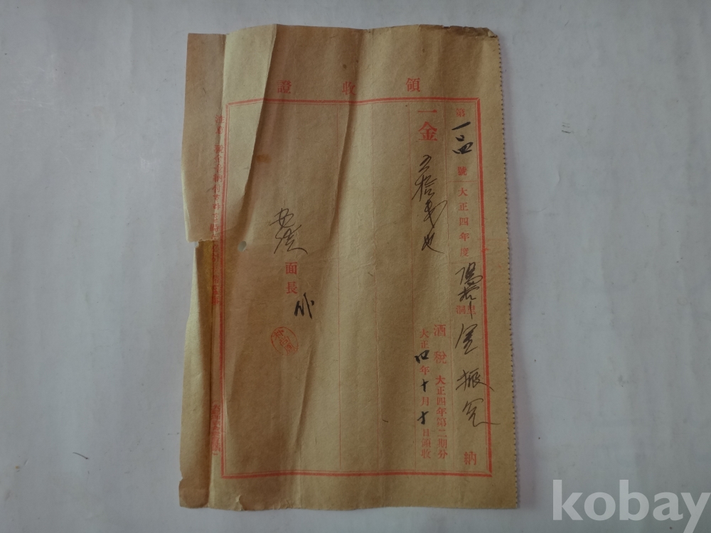 주세 영수증 (대정4년, 의성군 안계면장)