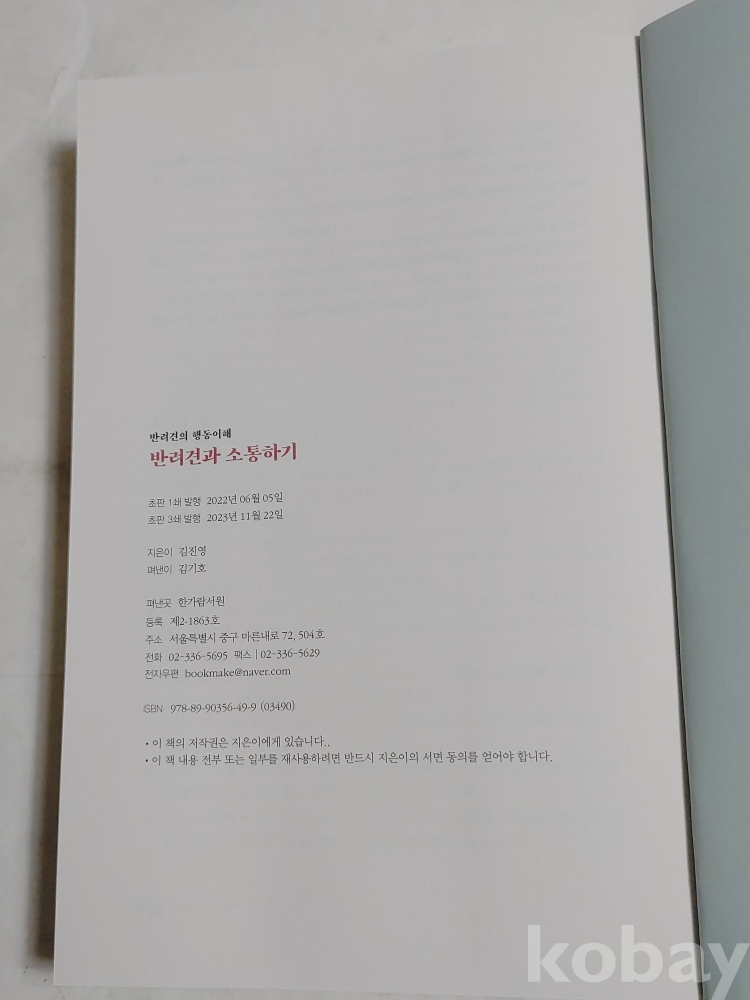 ★천원출발★ L-12-047 (도서) 반려견의 행동이해-반려견과 소통하기 (5권이상 묶음배송불가)