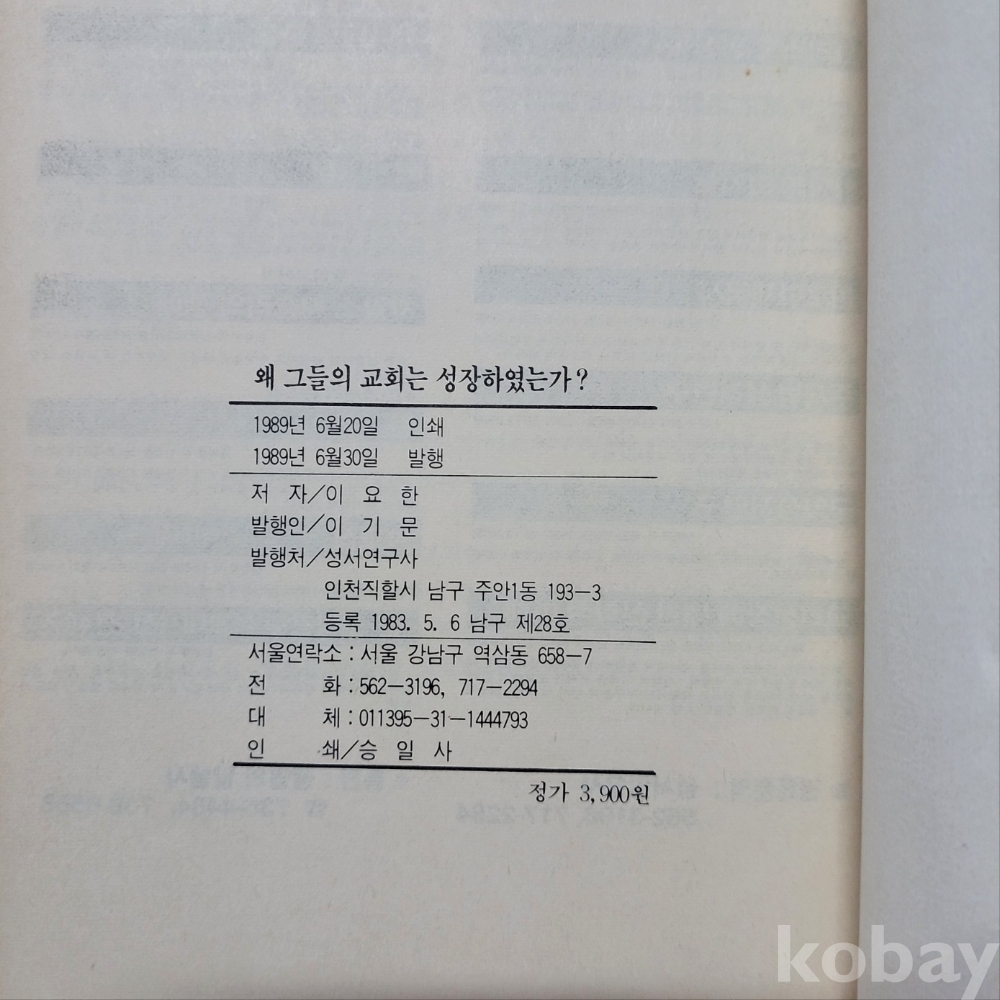 [희귀본] 왜 그들의 교회는 성장 하는가? - 한국교회 성장연구보고서 _성서연구사 초판본 ; 중급/서고t307