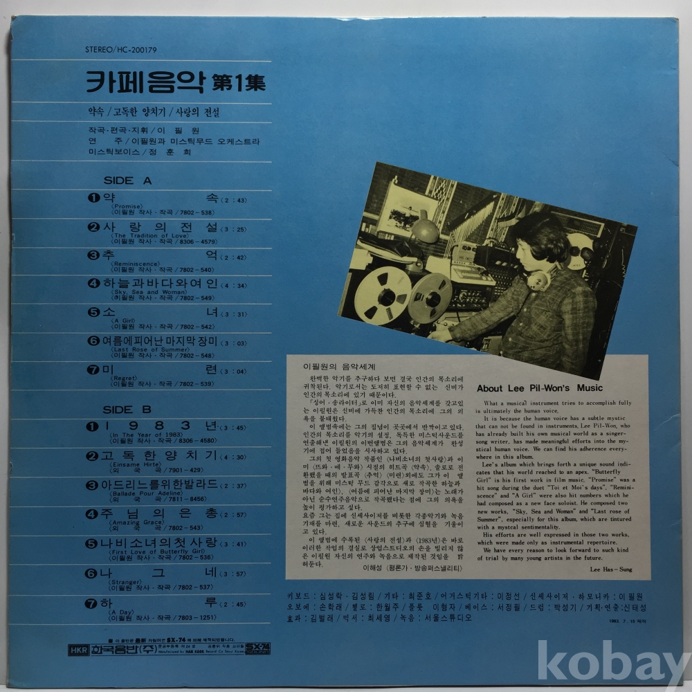 LP 350-36 카페음악 1 이필원 - 약속/ 1983년 자켓 EX+ 알판 EX 83 년 국내반