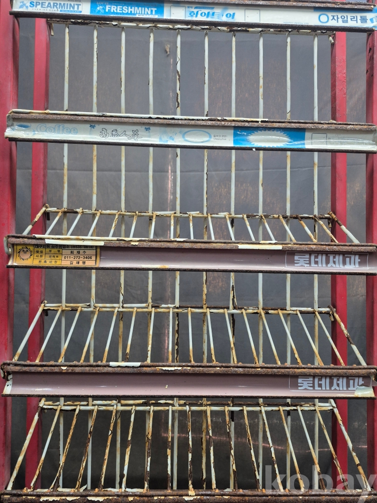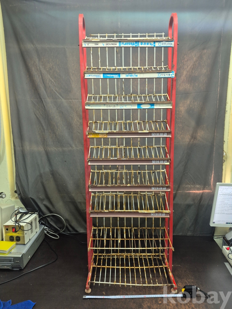 1970-80년대 롯데제과 쥬시후레쉬 스피아 민트 푸레쉬민트 커피껌 인삼껌 이브껌 아치형 껌다이 과자 광고매대 46*-25*134