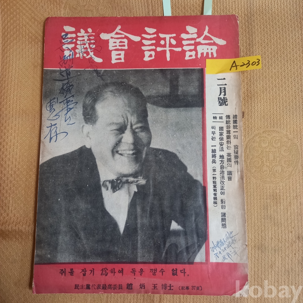 A 2303: 단기 4292년 2월호 조병옥 표지의"의회평론"