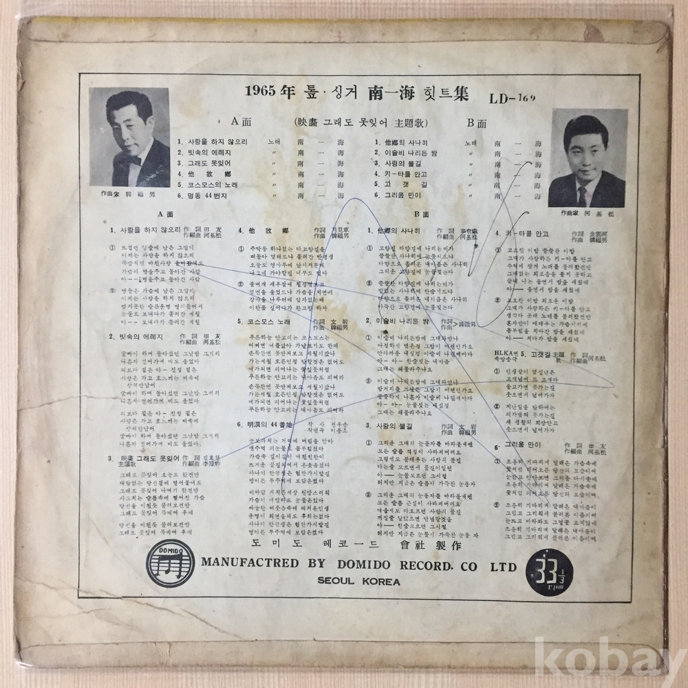 . 가요음반 대부분은 휘어짐이나 손상을 방지하기 위해 무지싱글자킷을 하나 더 사용하여 보관되었던 음반들입니다.