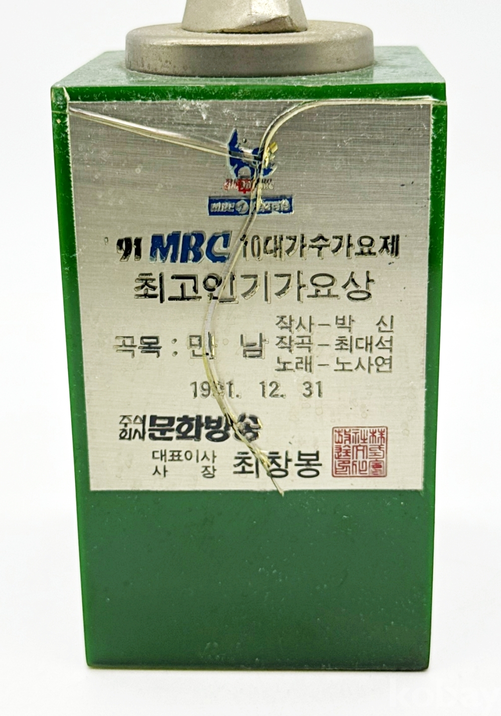 상품명 | 1991년 MBC 10대가수가요제 최고인기가요상 '노사연 만남' 트로피 | ||