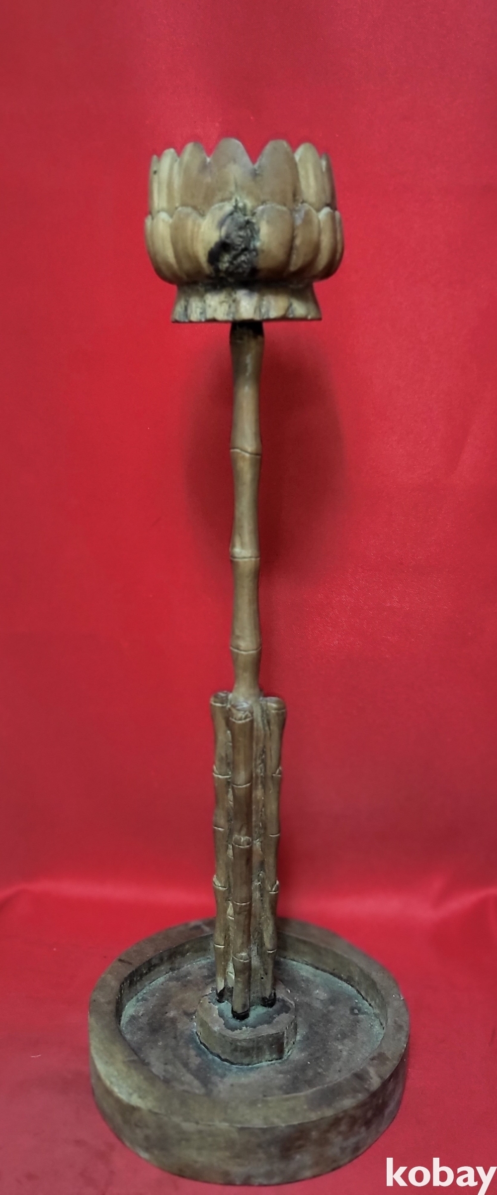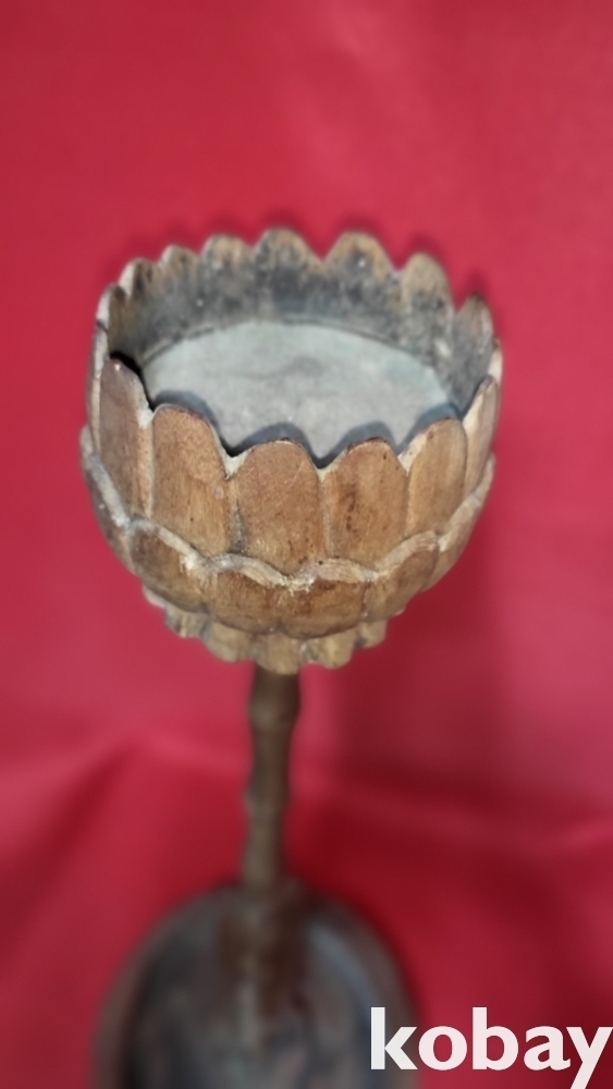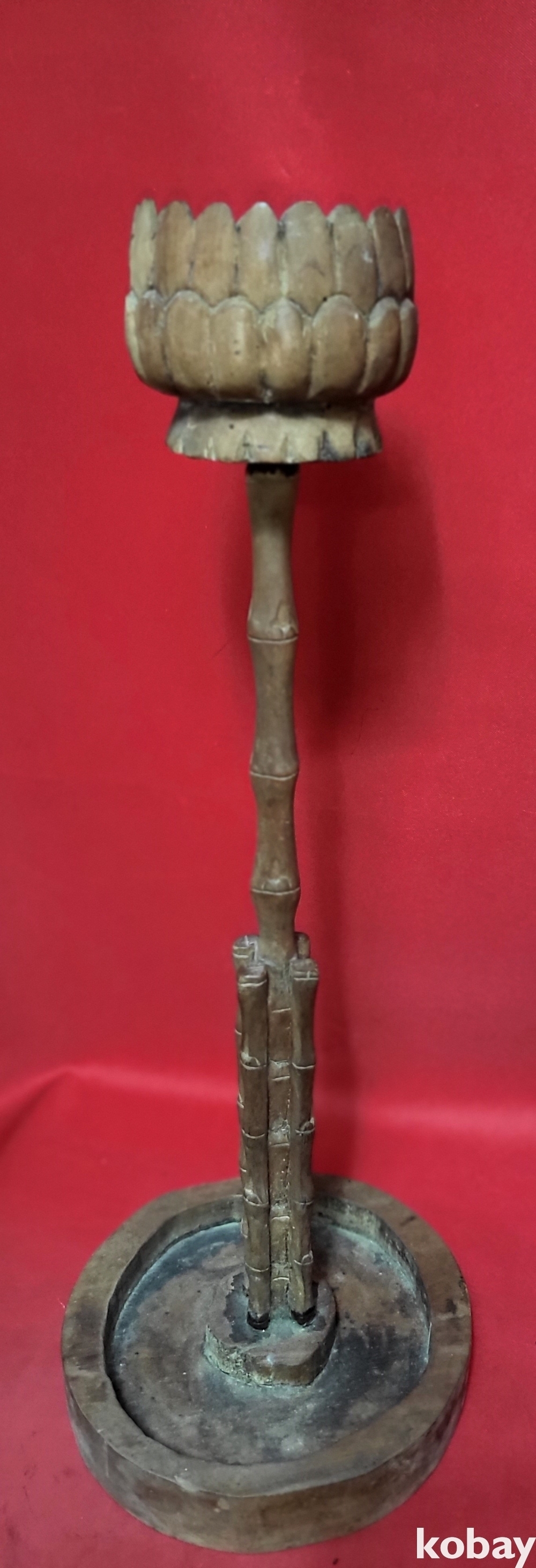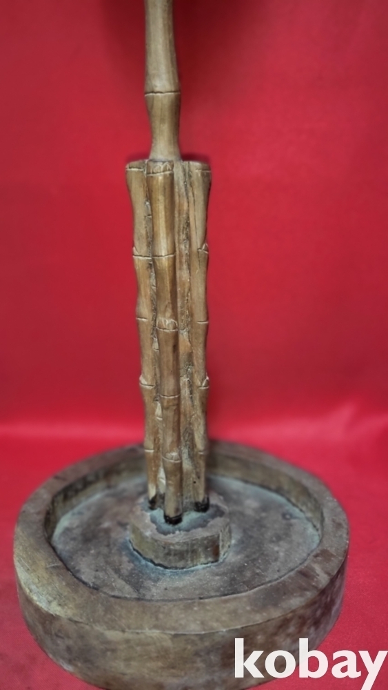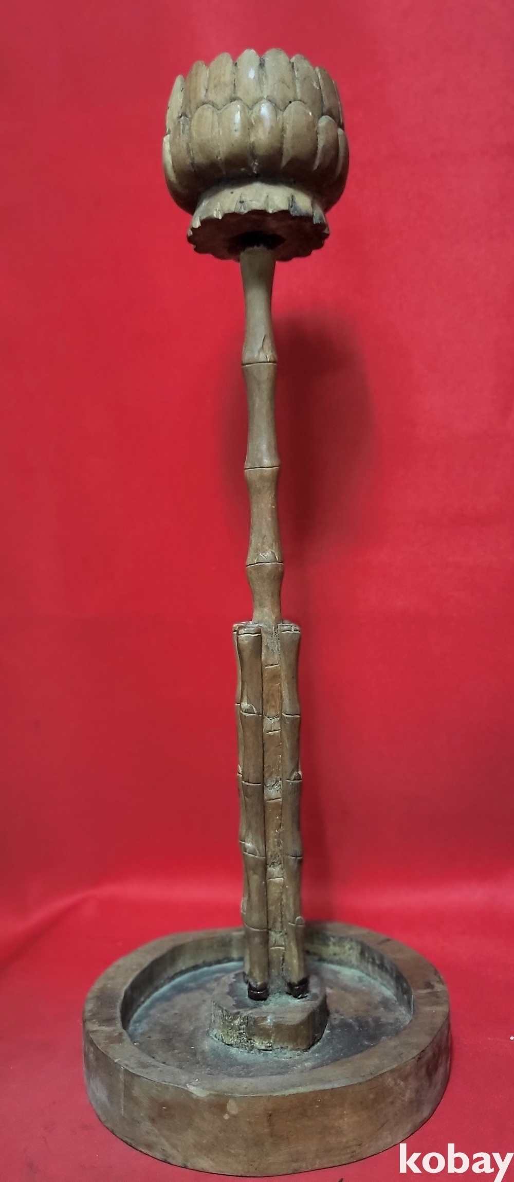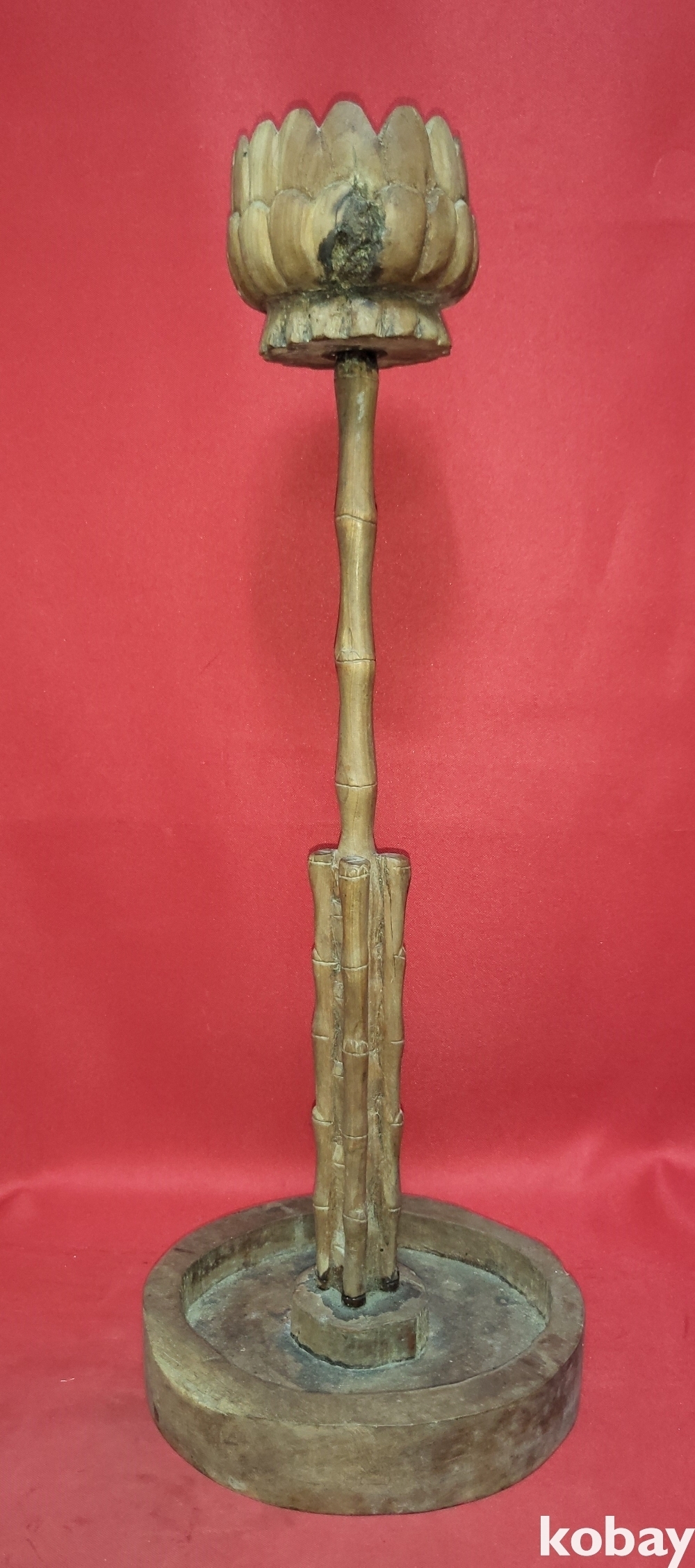 구한말 연대 괴목나무 화형 죽절(竹節)문양 등잔대입니다,