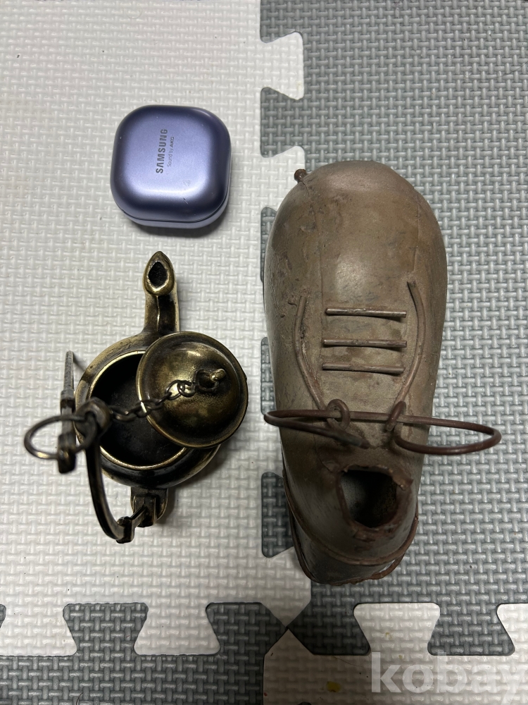 인테리어 소품으로 사용하기 좋아요. 앙증맞는 주전자는 동 재질로 제작되었고 엔틱한 신발은 소탈한 느낌을 주네요