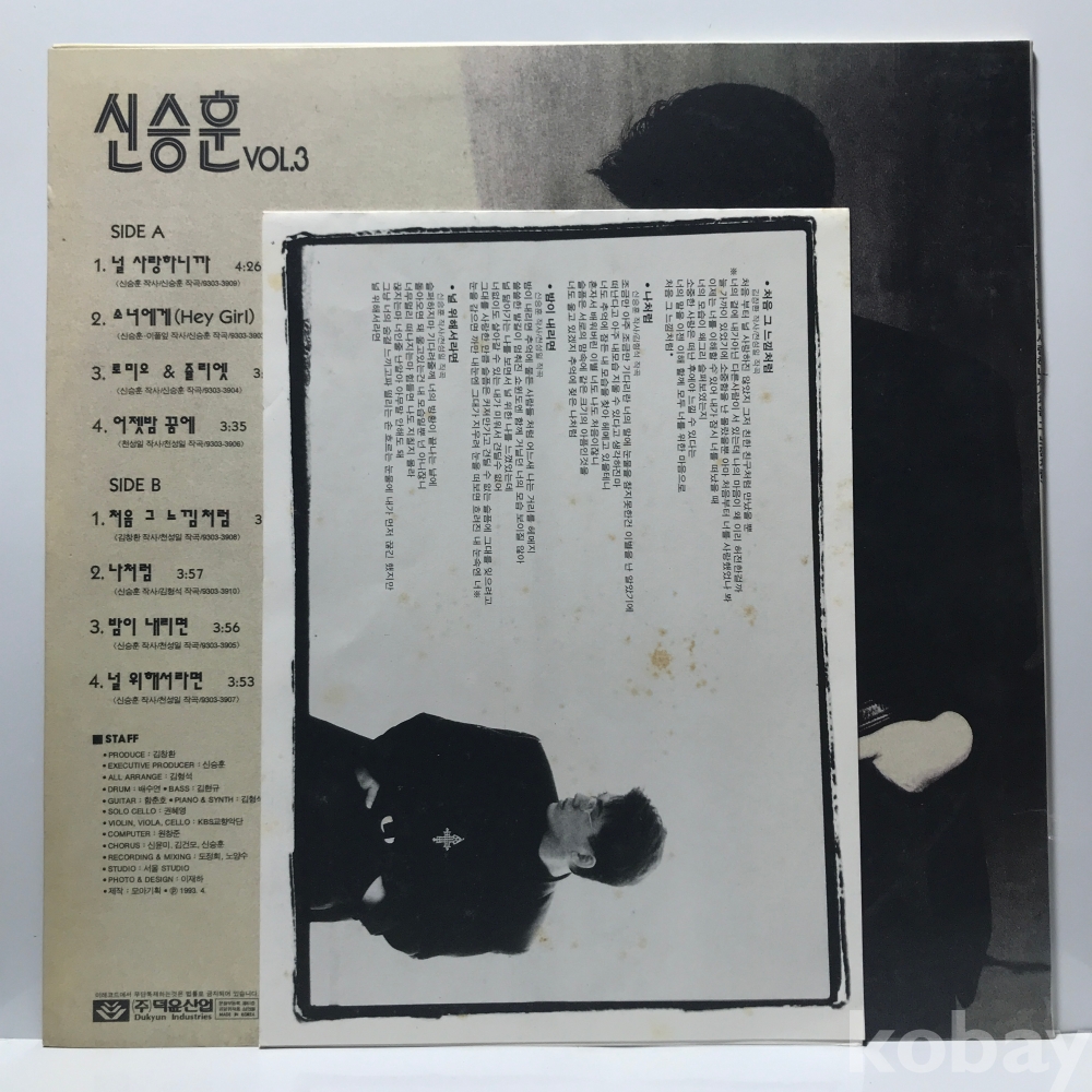 LP 29,300-102 신승훈 3집 - 널 사랑하니까 . 93 덕윤 자켓 EX 알판 EX