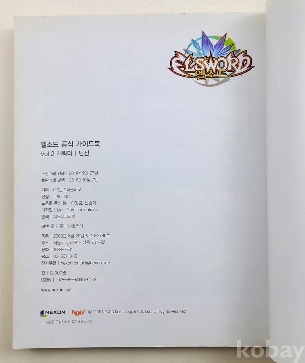 물 품 명 | 엘소드 : 공식가이드북 / Vol.2 캐릭터 • 던전 / 2011년 초판 / 넥슨코리아 |