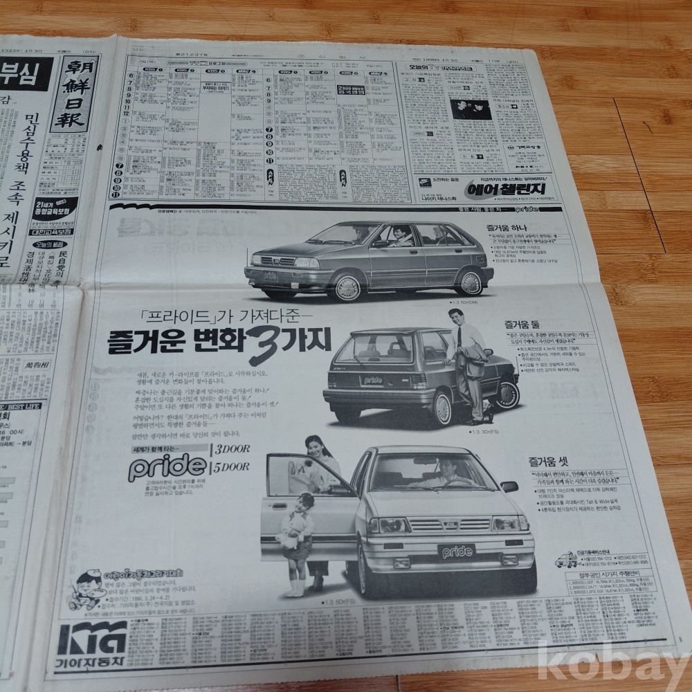 기아자동차 프라이드 광고 조선일보 90년4월5일 올려드립니다