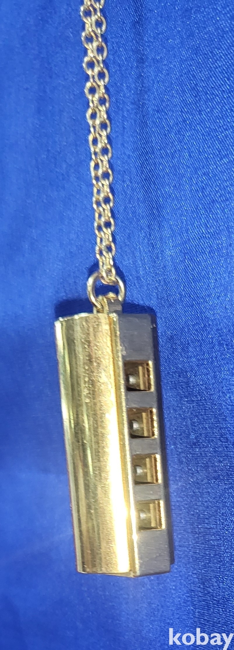 황동으로 완성된 실제 소리를 내고있는 초미니 하모니카 팬던트입니다,